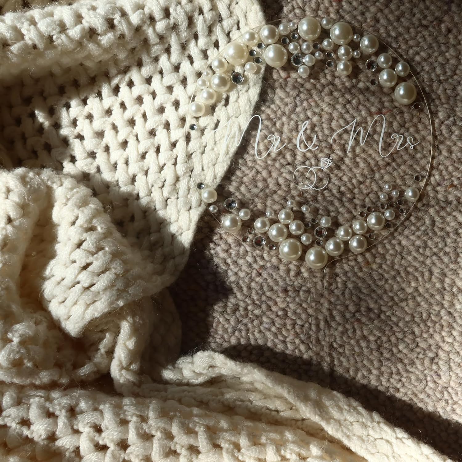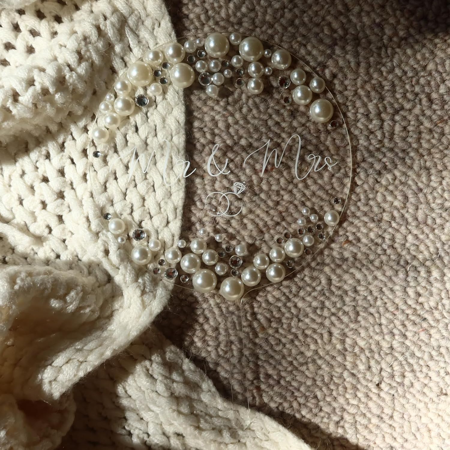 - Material & Color: Acrylic and Simulated diamonds and pearls