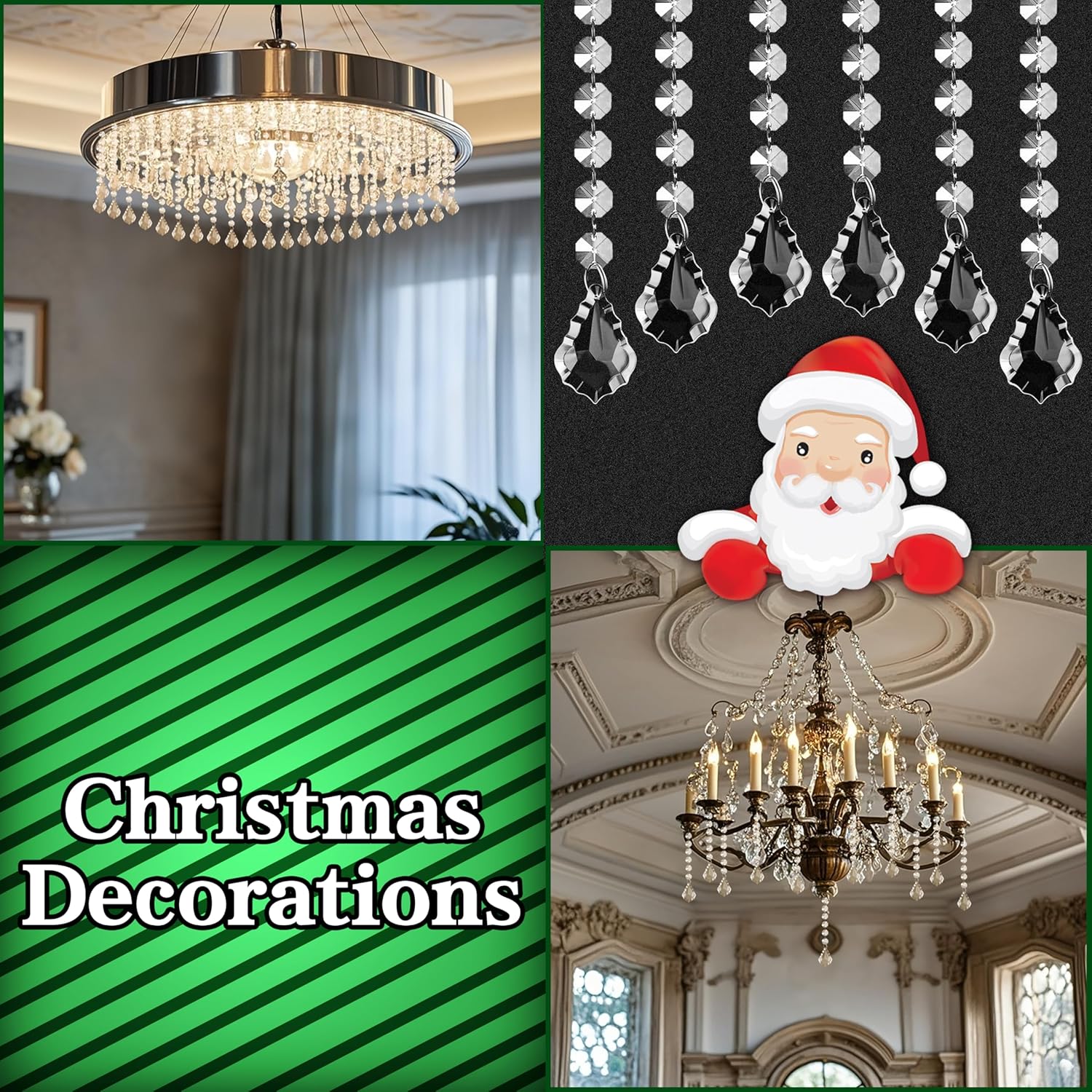 - Elegant Hanging Ornaments: Designed with teardrop acrylic prisms, combined with clear plastic icicle drops adorned with crystal beads, creating a festive and romantic ambiance. Ideal for decorating Christmas trees, centerpieces, chandeliers, windows, and various corners of your home.