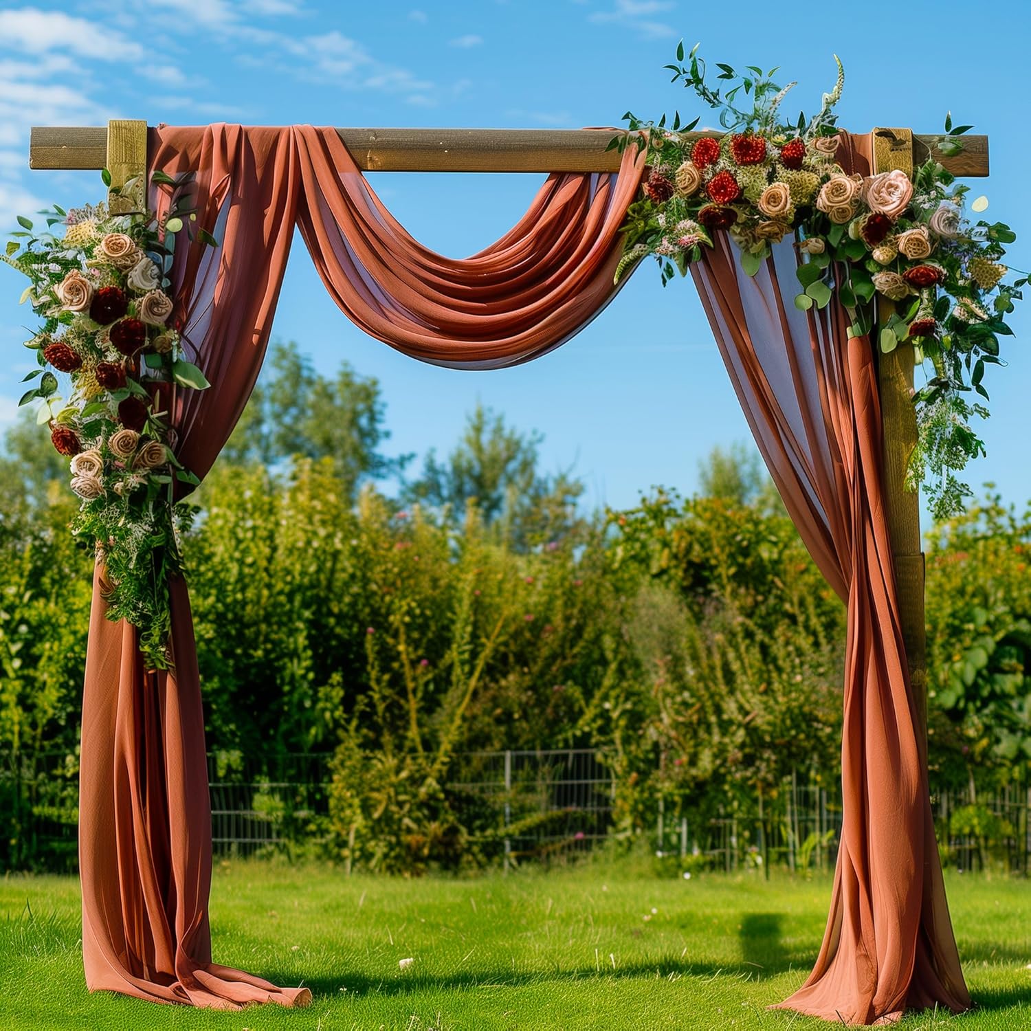 Wedding Arch Draping Fabric 3 Panels 28.7" x 20FT Terracotta Sheer Chiffon Backdrop Drapes for Wedding Ceremony Birthday Party Bridal Shower Outdoor Decoration