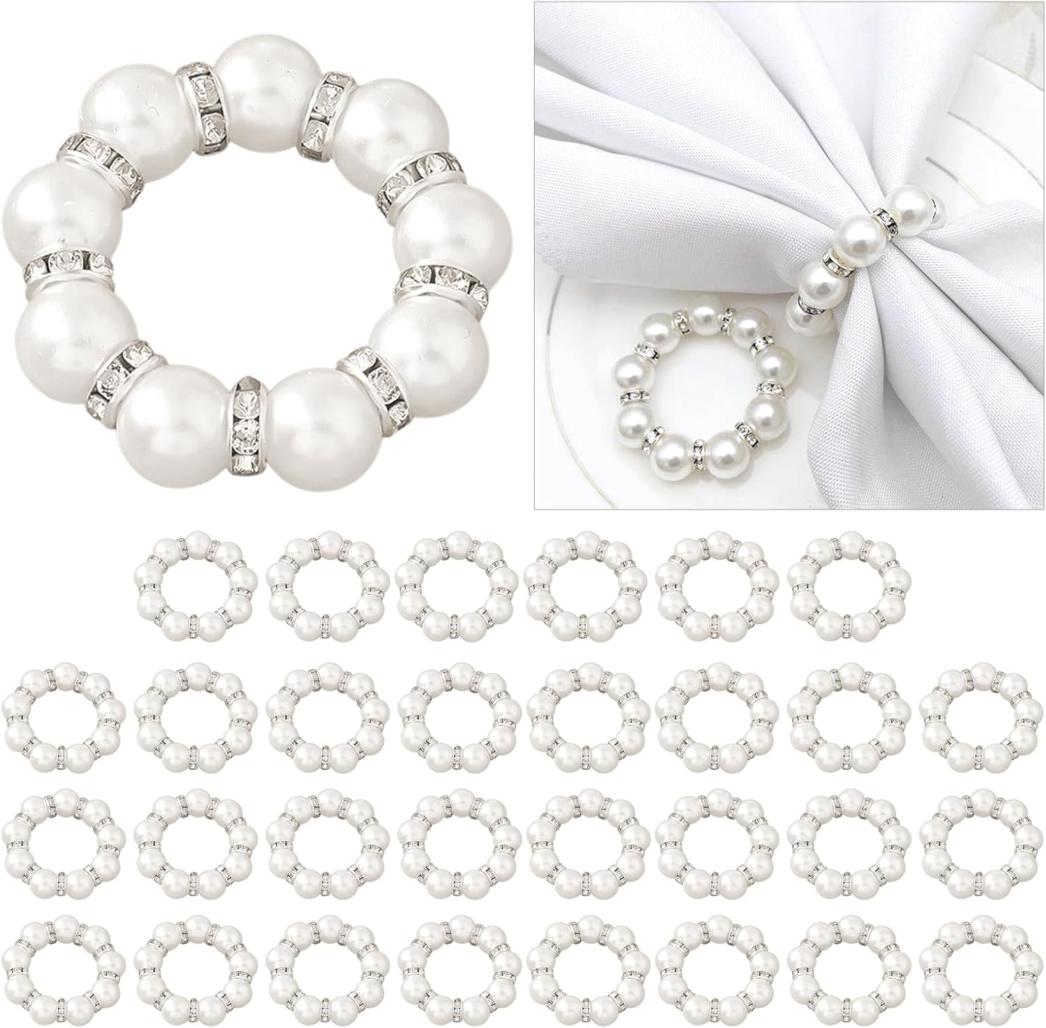 - 3 colors available: Silver Diamond White Pearl, Gold Diamond White Pearl and Champagne Pink Pearl. With an inner diameter of 4cm/1.57inch, these wedding napkin ring holders can easily fit most napkins, providing a stylish presentation. Please check the size carefully before ordering