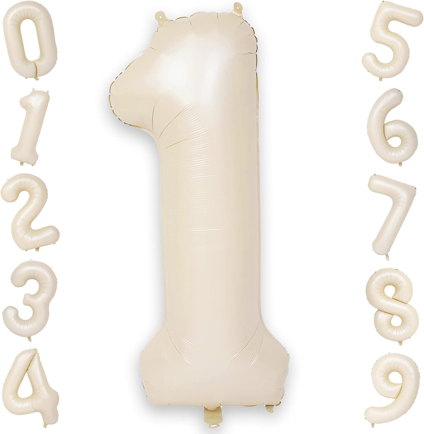 - Cream White Number 1 Balloon 40 Inch: Includes 1pc beige "1" balloon and a straw for easy inflation and deflation. This elegant, neutral digital helium balloon is perfect for birthdays, anniversaries, or special occasions like a 1st, 10th, 21st, or 31st celebration. Mix and match with other numbers and letters to create a personalized, memorable party setup!