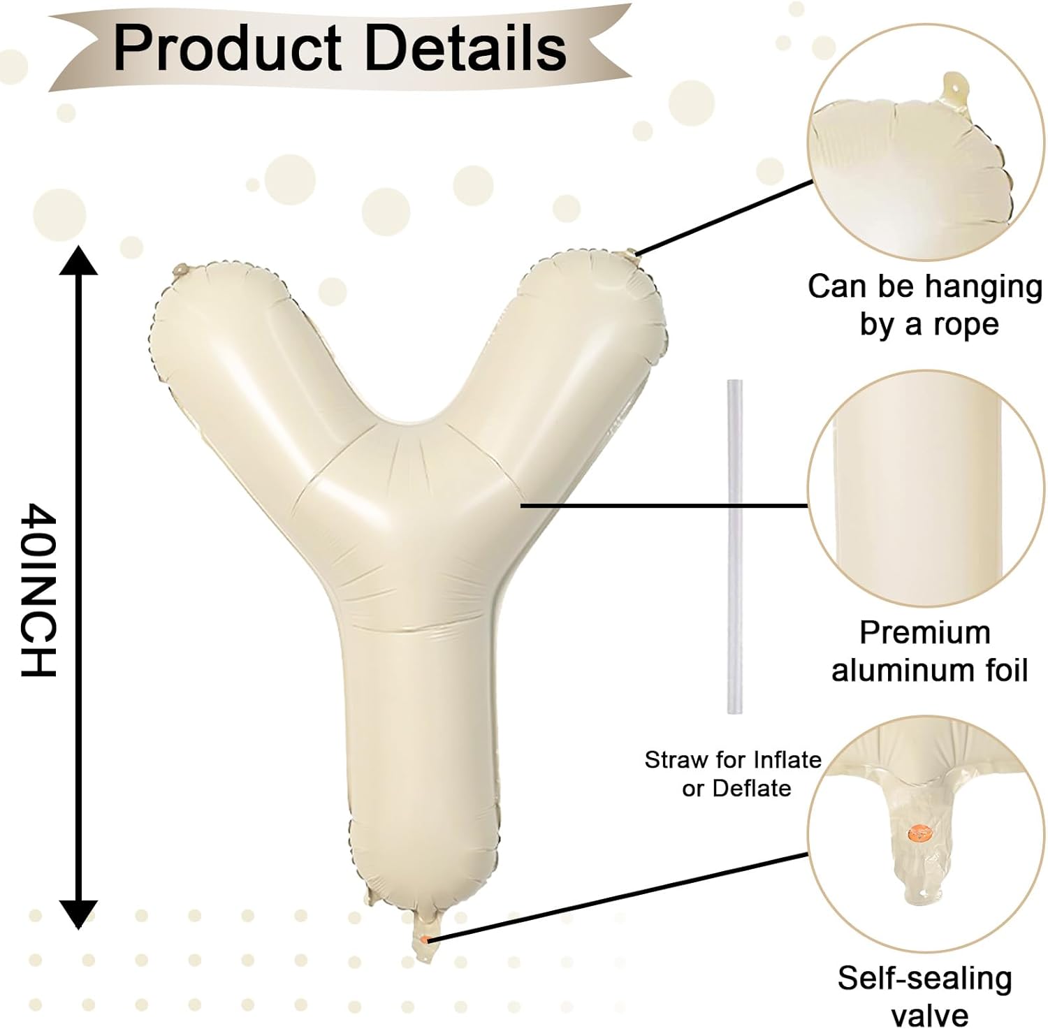 - Cream White Letter Y Balloon 40 Inch: Includes 1pc giant beige "Y" letter balloon and 1 straw for easy inflation and deflation. Our elegant big beige balloons are perfect for personalized parties. With 26 letters (A-Z) and numbers (1-9) available, you can mix and match to fit your theme.