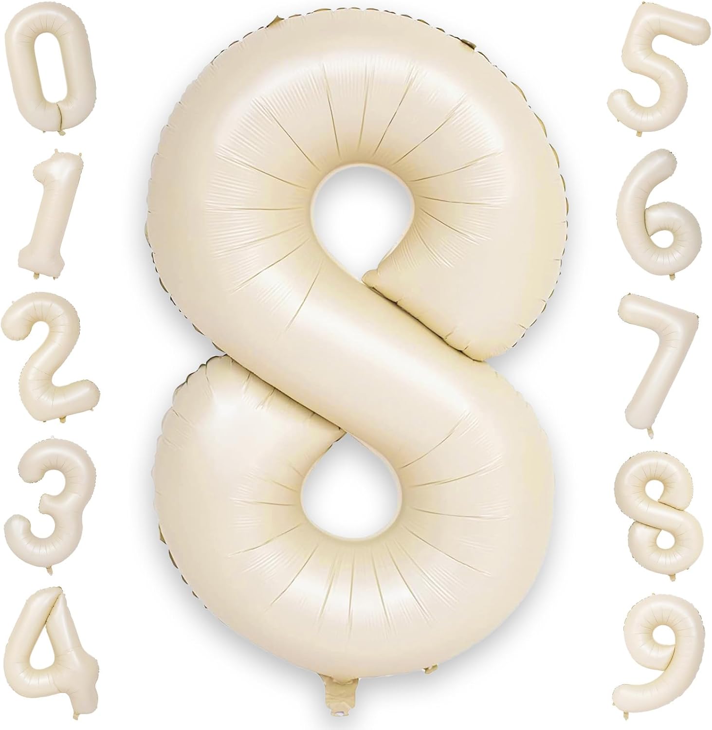 - Cream White Number 8 Balloon 40 Inch: Includes 1pc beige "8" balloon and a straw for easy inflation and deflation. This elegant, neutral digital helium balloon is perfect for birthdays, anniversaries, or special occasions like an 8th, 18th, 28th, or 80th celebration. Mix and match with other numbers and letters to create a personalized, memorable party setup!