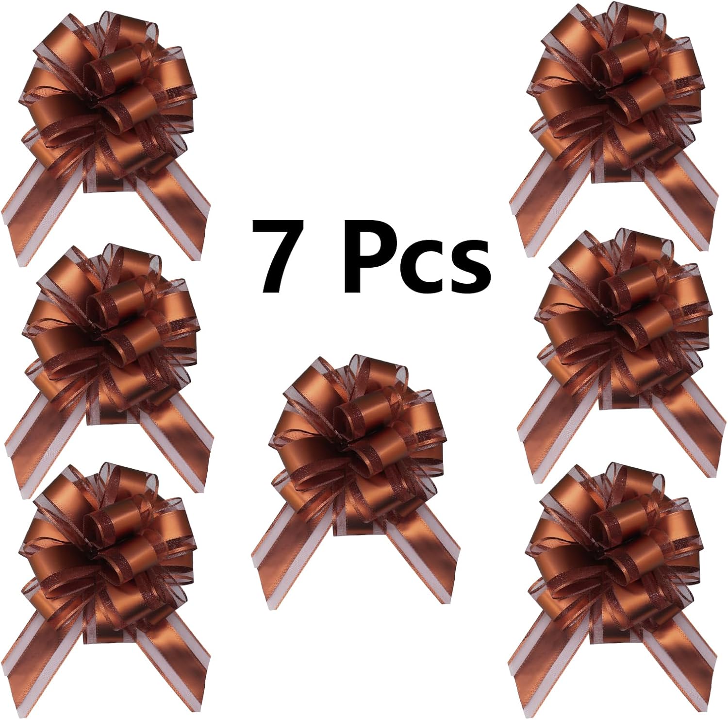 7 Pieces Large Pull Bows, 6 inche, Big Bow for Gift Wrapping, Christmas Party Birthday Gift, Wedding Baskets,Valentine's Day Gift Decorations, Flower Decoration (Coffee)
