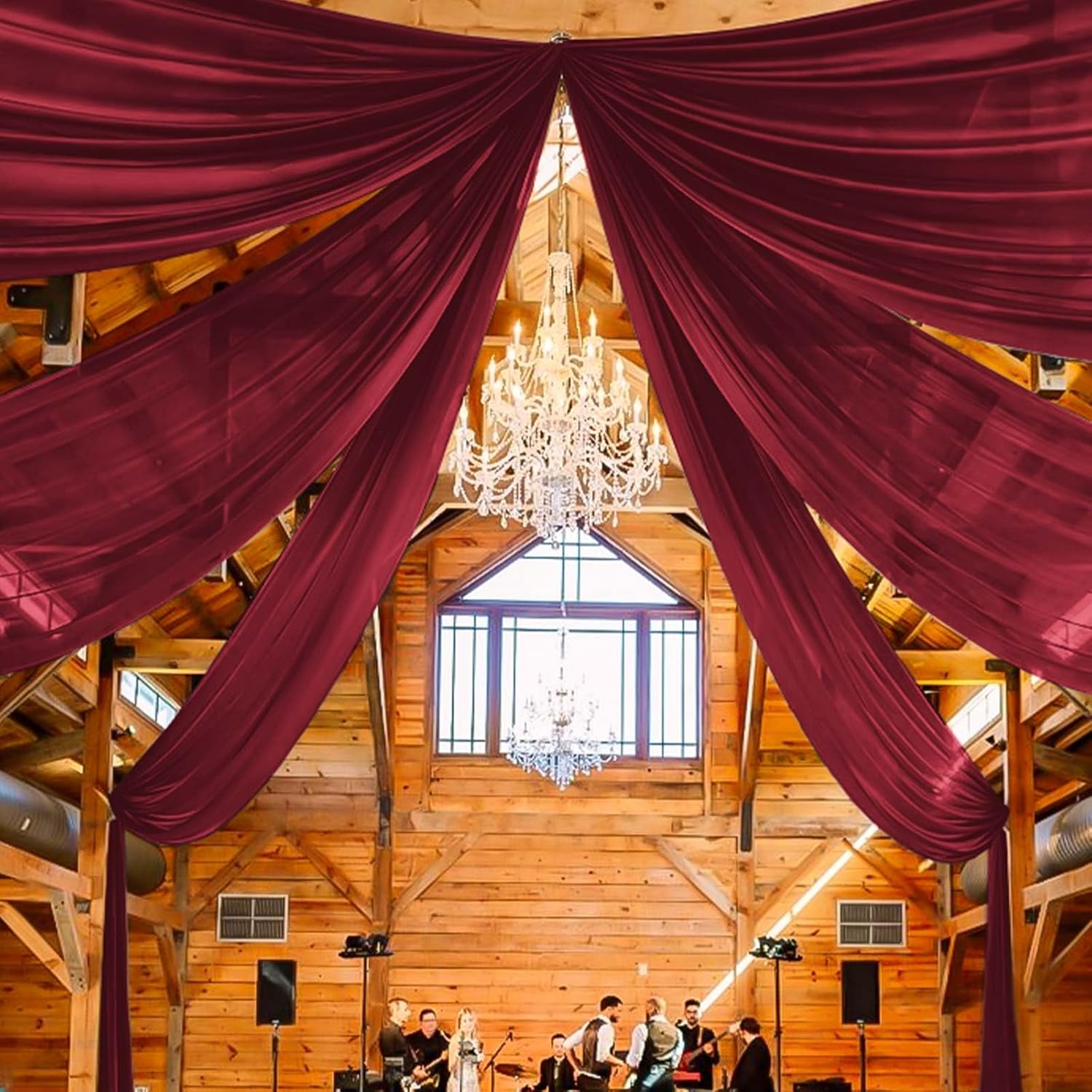 6 Panels Burgundy Ceiling Drapes for Wedding 5ftx10ft Chiffon Fabric Arch Draping Curtains Sheer Drapery for Party Ceremony Birthday Baby Shower Reception Stage Swag Ceiling Decorations