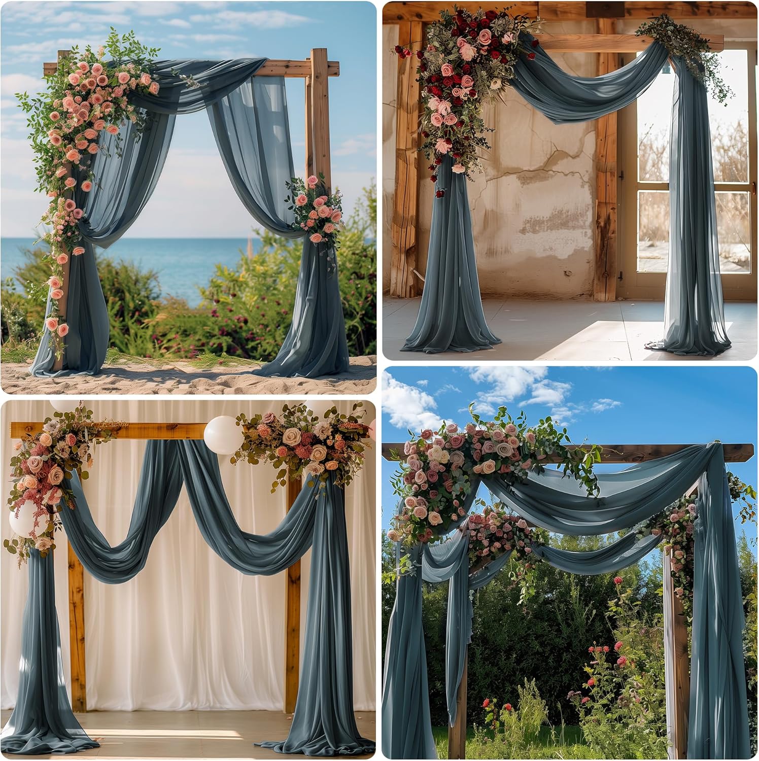 Wedding Arch Draping Fabric 6 Panels 28.7" x 20FT Grey Blue Sheer Chiffon Backdrop Drapes for Wedding Ceremony Birthday Party Bridal Shower Outdoor Decoration