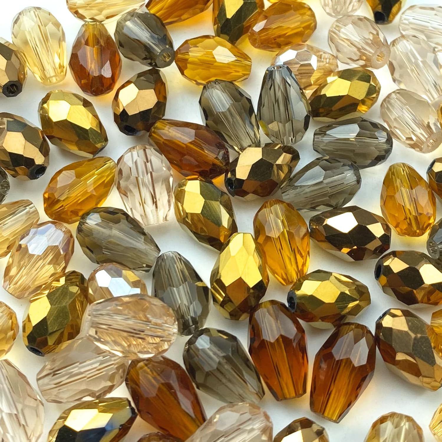 110pcs 6x8mm Teardrop Crystal Glass Beads Vertical Hole Faceted Loose Spacer Beads for DIY Craft Jewelry Making Necklace Bracelet Earring Wind Chimes(Brown Series)