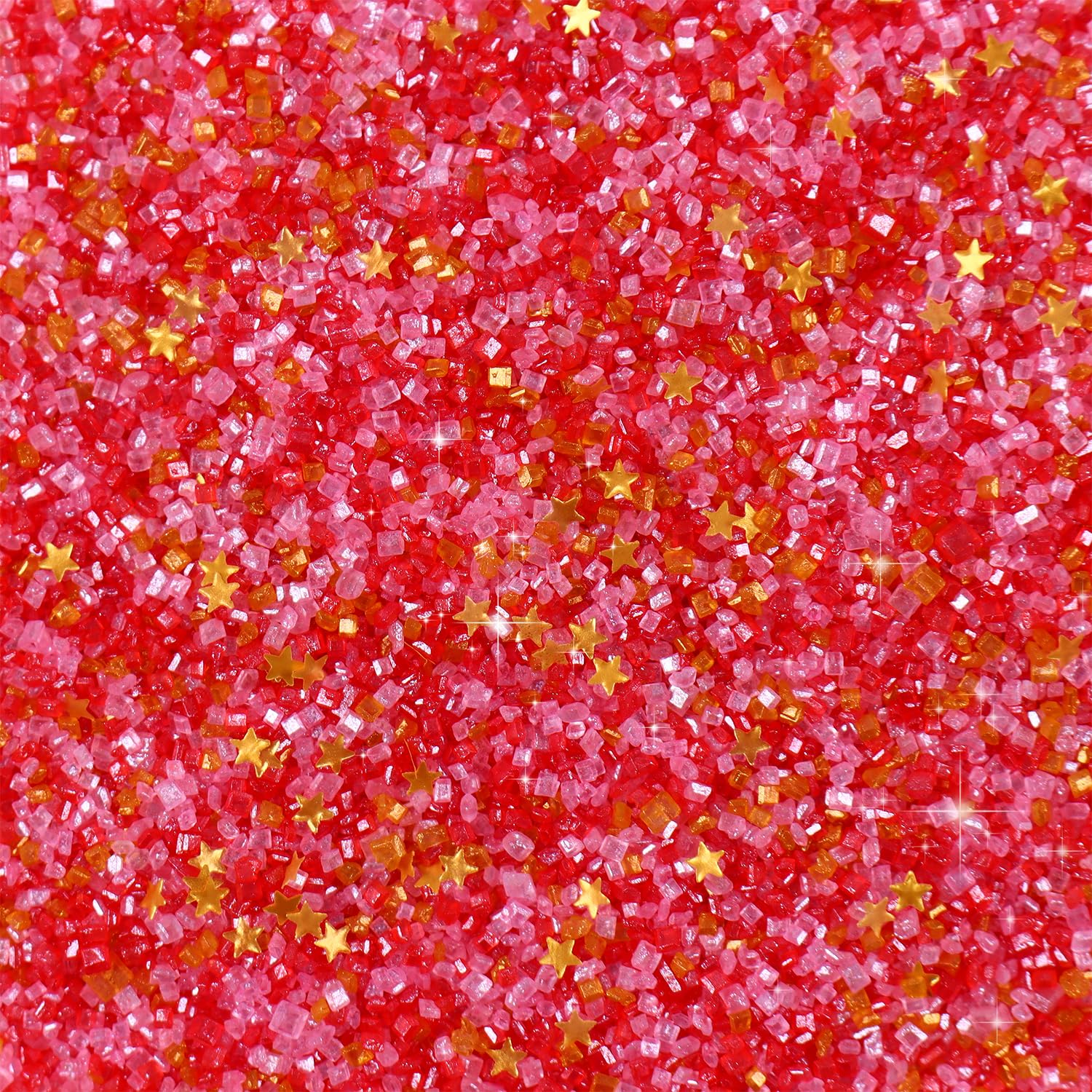 Edible Sanding Sugar Gold Star Glitter Mix, Red Sanding Sugar, Pink Sanding Sugar, Shimmer star sprinkles, Pink and Red Sprinkles for Weddings, Birthdays, and Valentines(4.23oz/120g)