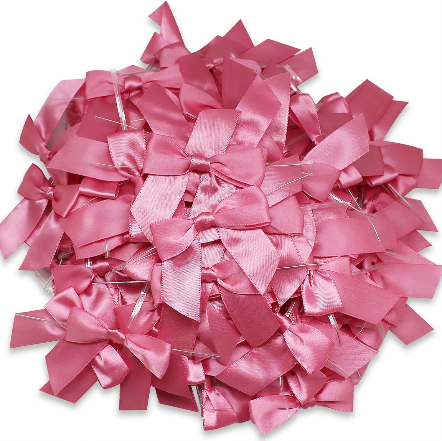 114 Pack Twist Tie Bows for Treat Bags 3" Hot Pink Satin Ribbon Bows for Package Craft, Gift Wrapping Decoration, Candy Bags, Bakery Bags, Wedding, Baptism, Tableware Decor Party Decoration