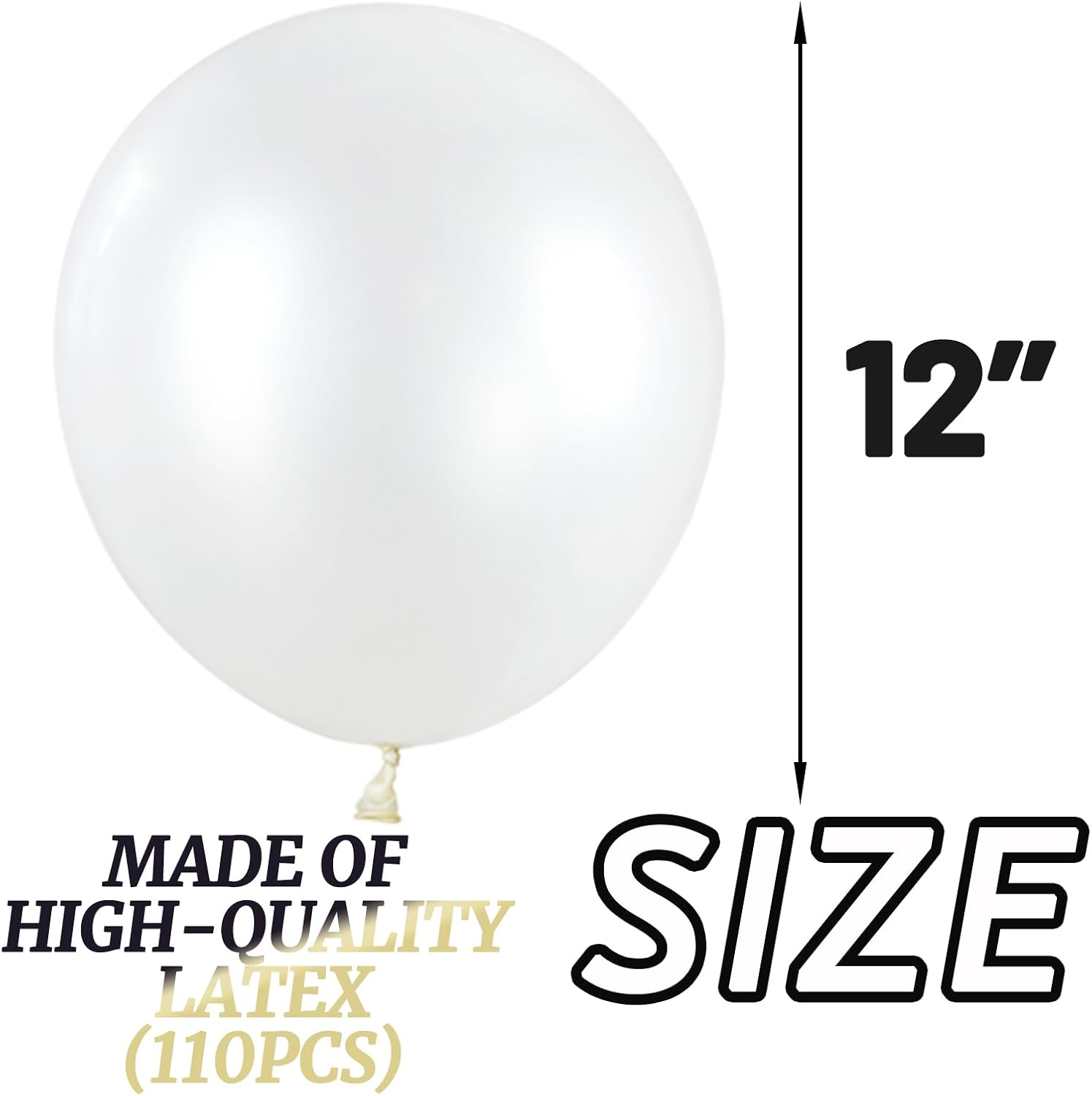 110pcs Pearl White Balloon 12 inch, Pearl white Latex Balloons for Birthday Party Baby Shower Wedding(with 2 Ribbons).