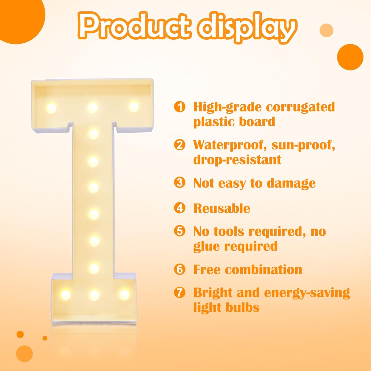 - Reusable Large Light Up Letters: While others may use single-use KT boards, our large marquee for letters are made from corrugated plastic board, offering versatility and reuse. After your event, simply disassemble large light up letters into components that can serve multiple purposes. Rather than discarding big letters for party, explore how they can be applied in different ways, extending their functionality and value