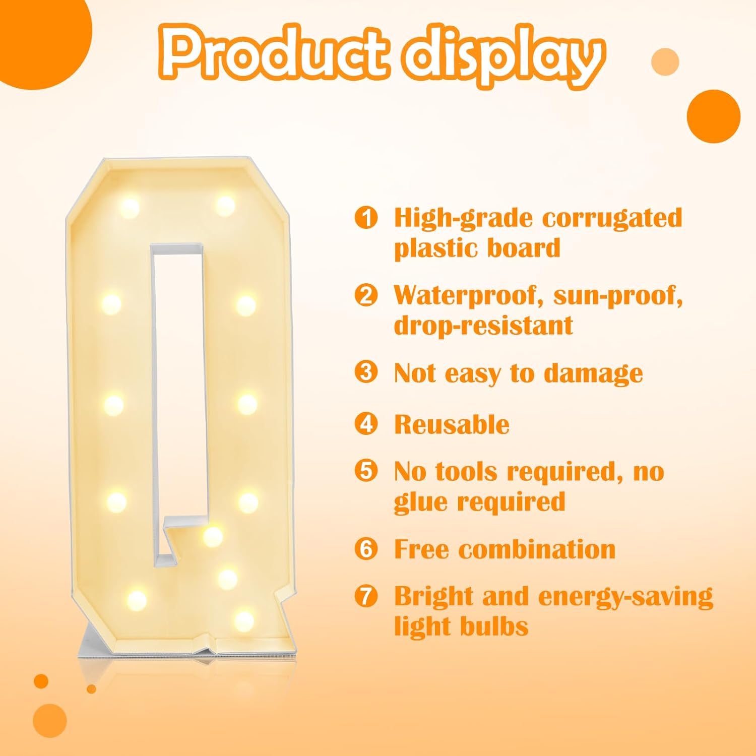 4ft Marquee for Letters Q, Large Light up Letters, Multifunctional Large Marquee for Letters 4 Feet Tall for Party Decorations, Letter Balloons, Wedding Decor, Proposal Decorations (Letters Q)