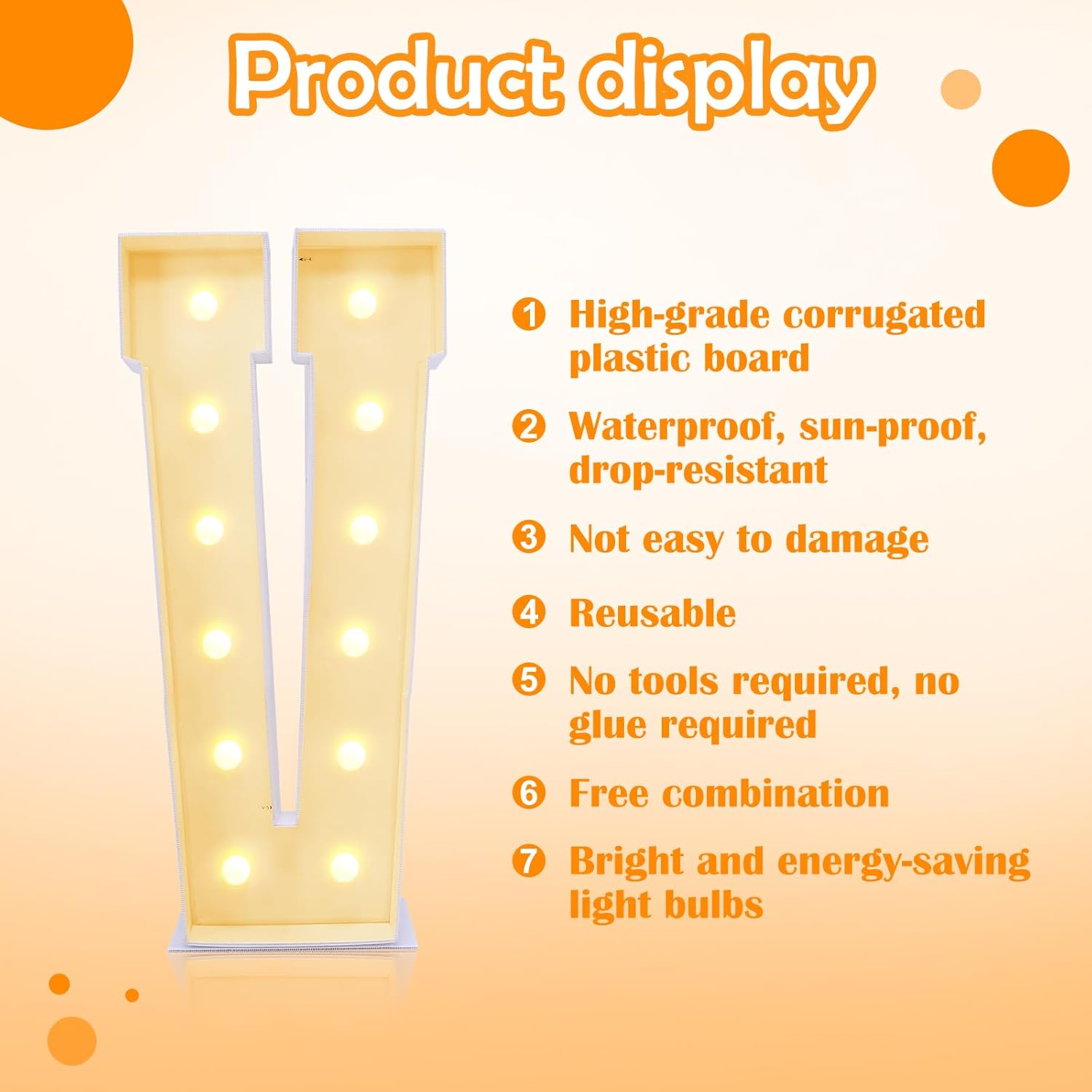 4ft Marquee for Letters V, Large Light up Letters, Multifunctional Large Marquee for Letters 4 Feet Tall for Party Decorations, Letter Balloons, Wedding Decor, Proposal Decorations (Letters V)
