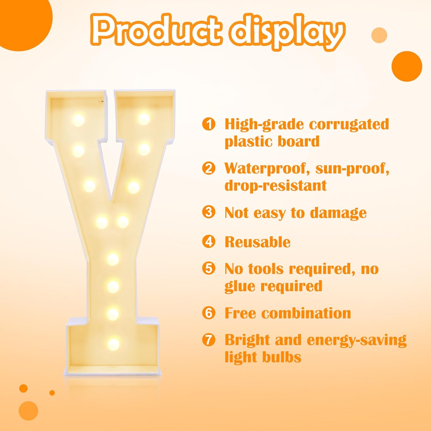 - Reusable Large Light Up Letters: While others may use single-use KT boards, our large marquee for letters are made from corrugated plastic board, offering versatility and reuse. After your event, simply disassemble large light up letters into components that can serve multiple purposes. Rather than discarding big letters for party, explore how they can be applied in different ways, extending their functionality and value