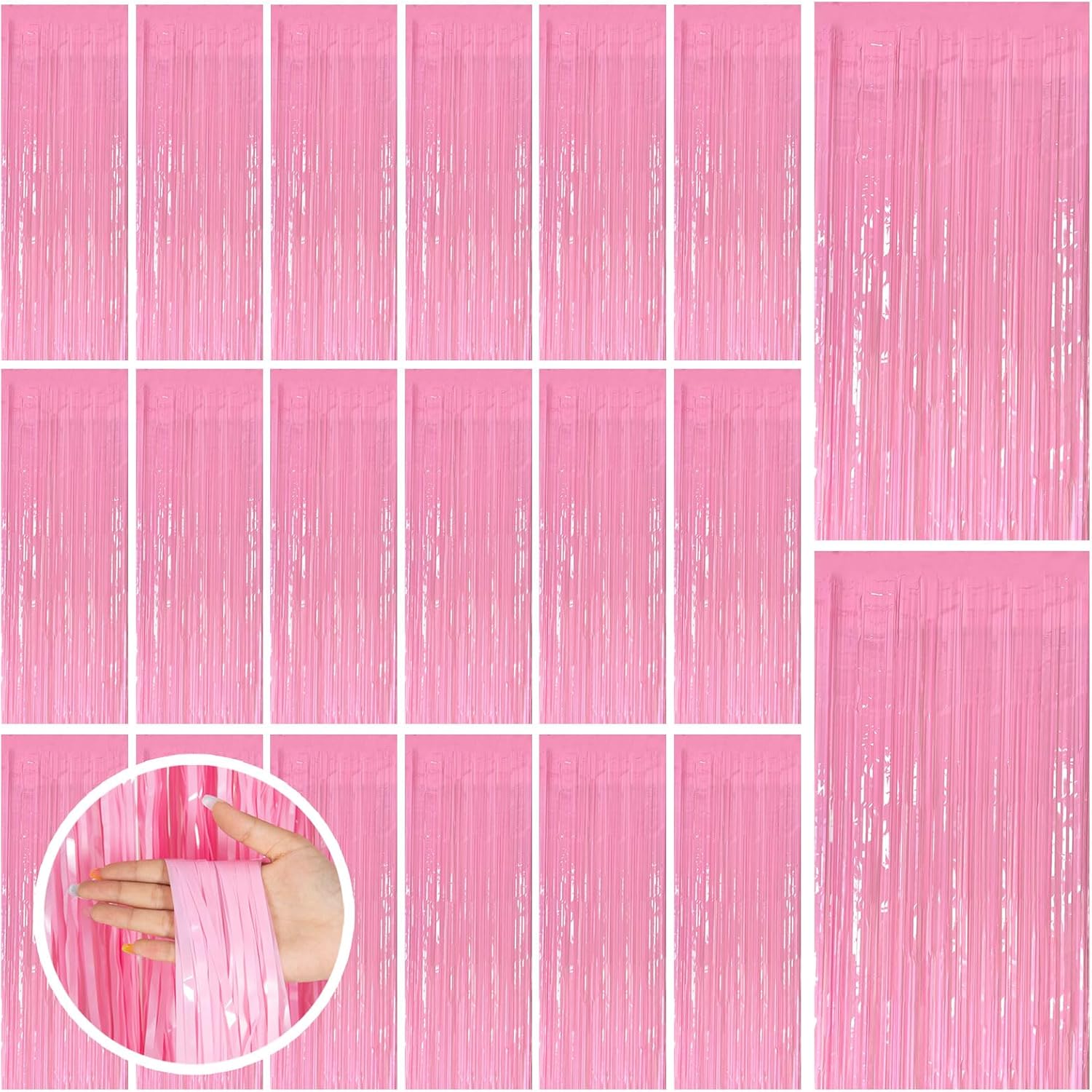 20 Pack Party Backdrop Decorations Pink Tinsel Curtain Party Backdrop Foil Fringe Birthday Decorations Photo Booth Streamer Backdrop Pink Theme Bachelorette Graduation Party Decorations