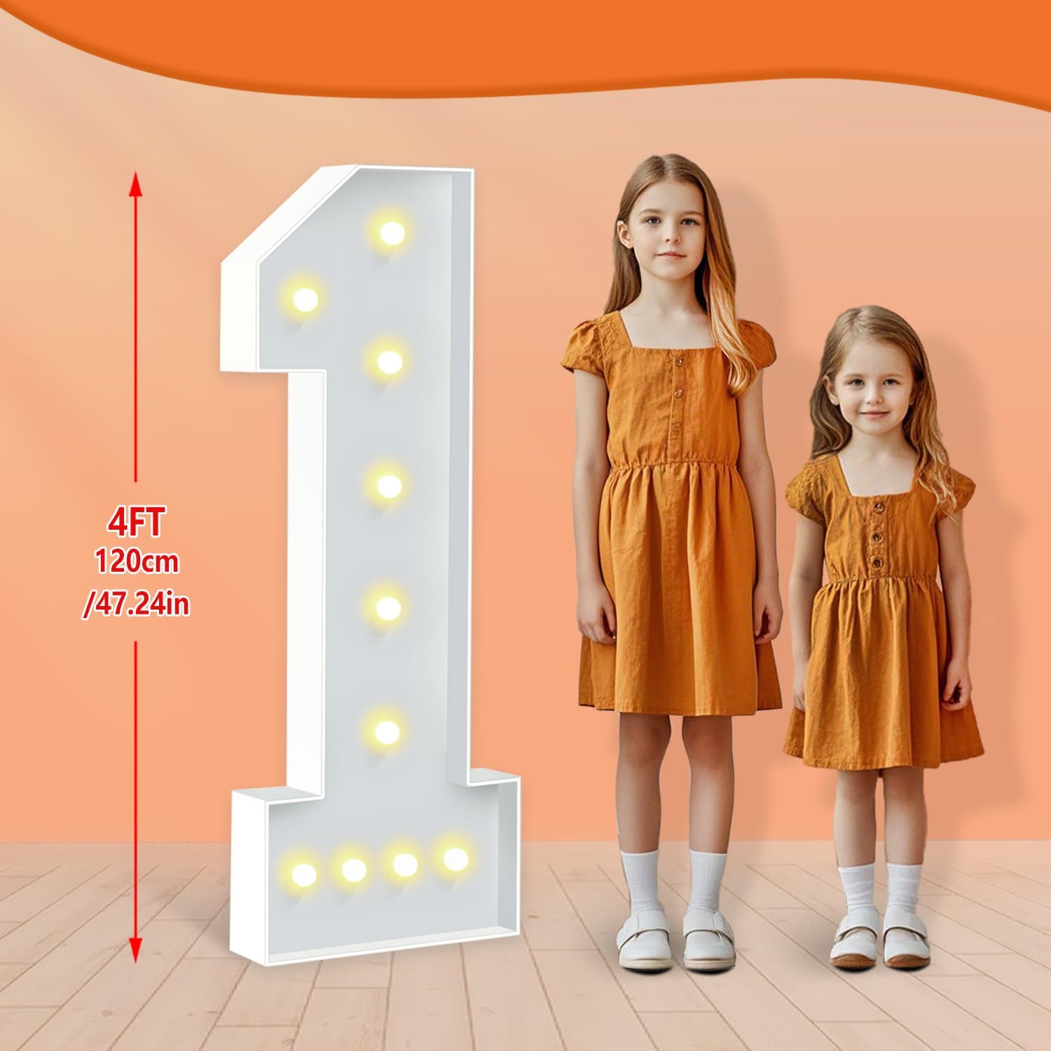 4FT Marquee Light Up Numbers, LED Giant Mosaic Numbers 1 for Balloons 1st 12th 16th Birthday Backdrop Baby Shower Anniversary Decorations Party Wedding Decor, Pre-Cut Foam Frame Kit
