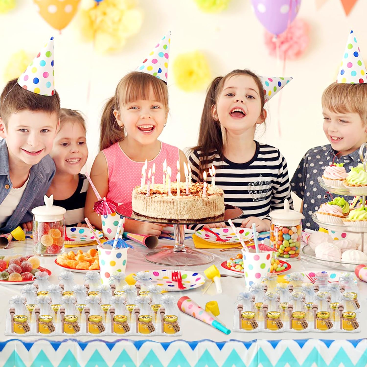 - Great Value Mini Honey Jars Set: This set includes 126 round mini honey jars with dippers, lids, stickers, bee charms, gift bags, tags, and 50m of jute twine. Everything you need to craft thoughtful party favors or sweet handmade gifts with ease.