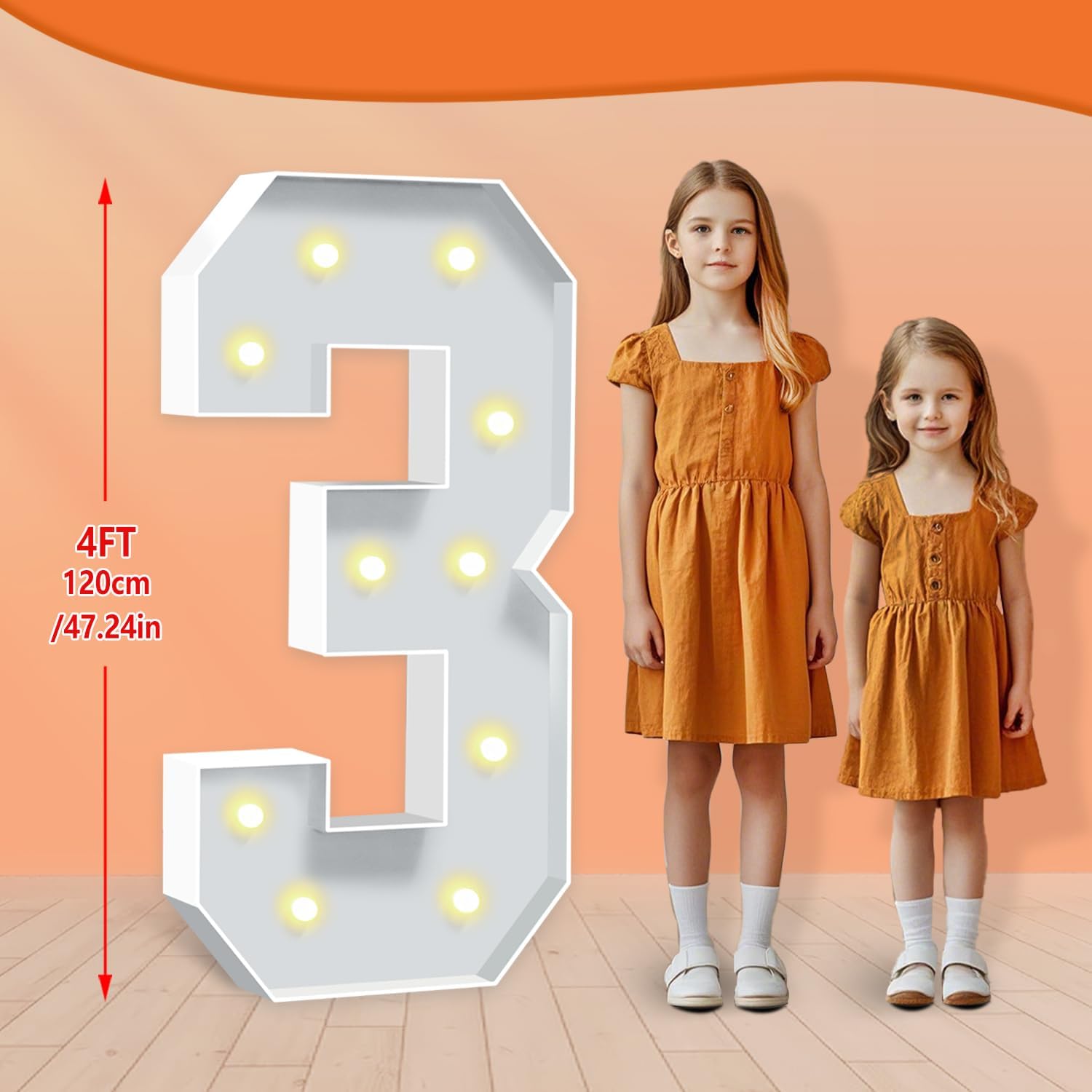 4FT Light Up Numbers 3, 47 inch Tall Marquee Numbers, DIY Marquee Light Up Numbers for 3rd 13th 30th Birthday Party Backdrop Displays, Mosaic Number Sign for Balloons Party, Anniversary