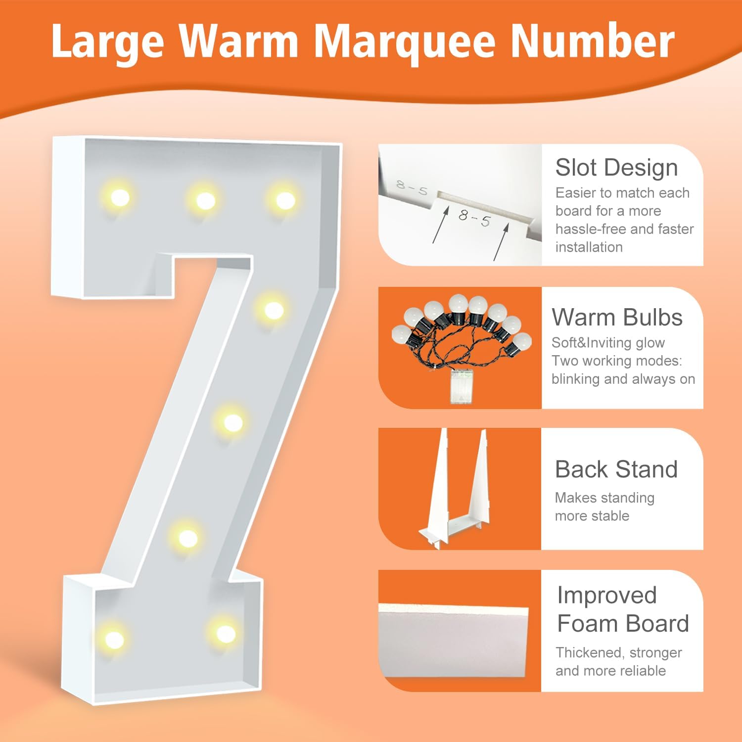 3FT Marquee Light Up Numbers 7, Warm White Marquee Numbers for 17th 70th Birthday Party Decor, LED Light Numbers for Graduation, Wedding, Engagement, Holiday Party Backdrop Arch Decoration