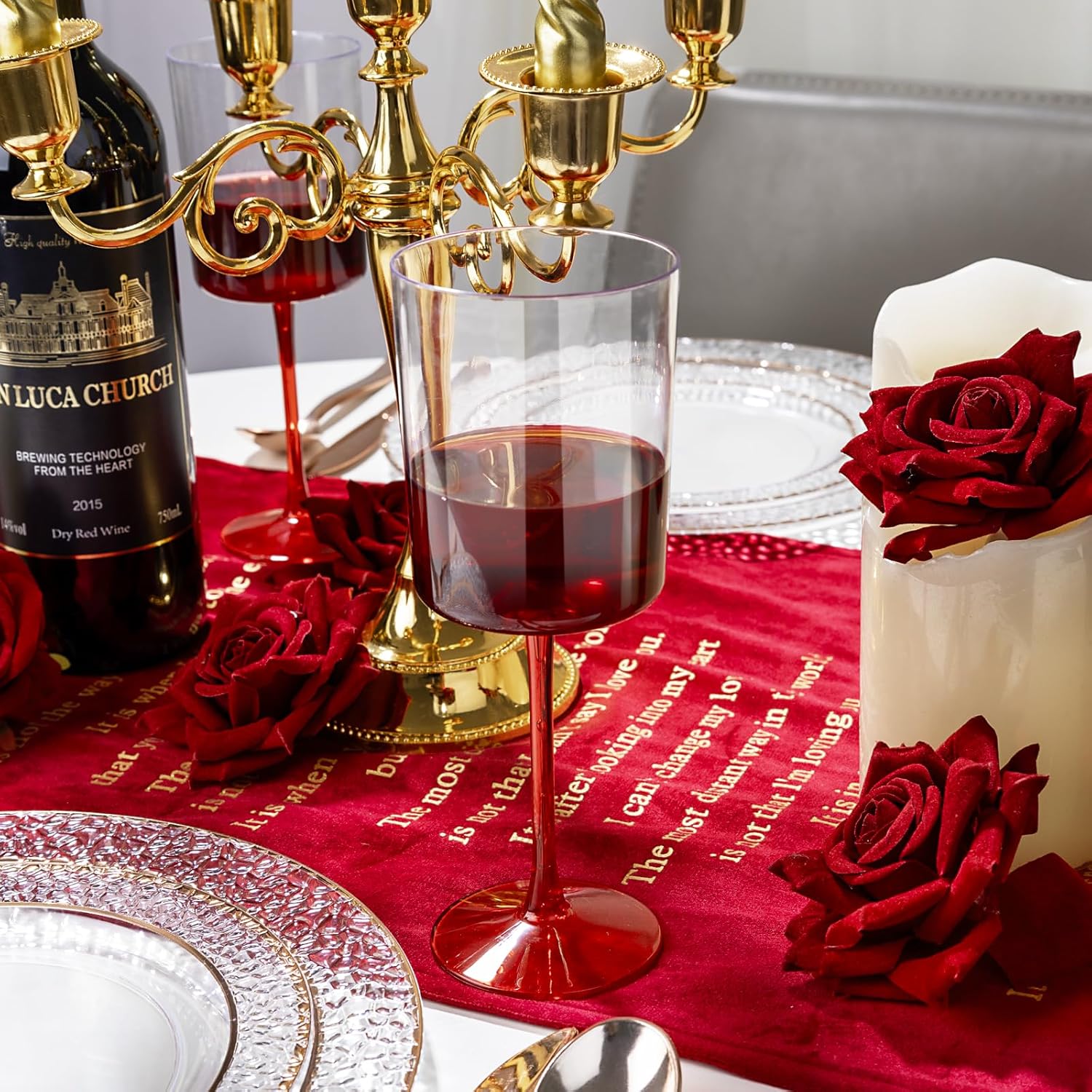Ciaell 12 Pack 10 Oz Clear Plastic Wine Glasses with Red Stem - Disposable Cocktail Goblets Perfect for Parties & Weddings & Poolside & Outdoors & Camping & Party & Christmas