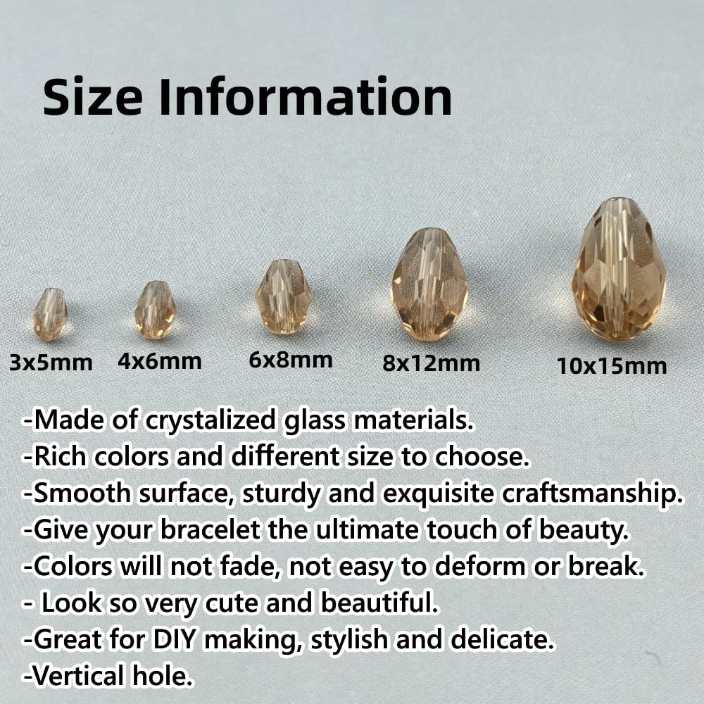 - Package Includes: You will receive 130 pieces of 6x8mm vertical hole teardrop crystal glass beads. These glass beads come in a variety of colors and sizes to choose, exuding glamour and beauty, making them suitable for jewelry crafting. They cater to your diverse needs while adding an element of fun to your daily life.