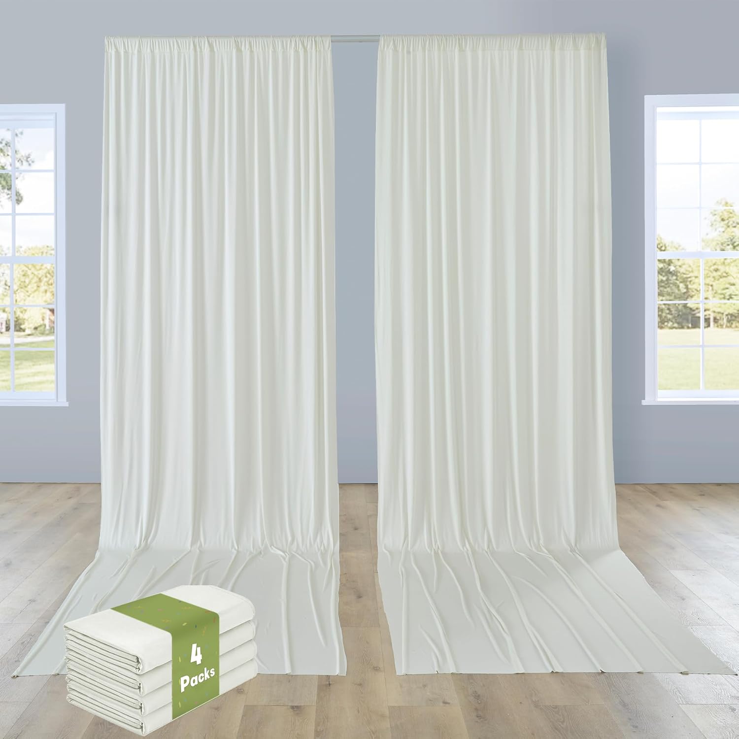 PartyVillage 20ft×15ft Ivory Backdrop Curtain for Wedding Parties, 4 Panels Wrinkle Free 15 FT Long Polyester Photo Backdrop Drapes Back Drop Cloth for Birthday Photography Background
