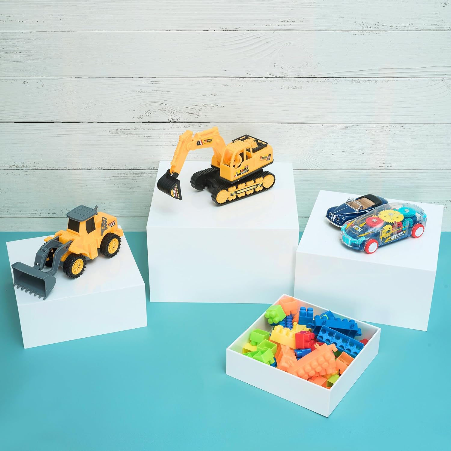 - Multi-Purpose – These white acrylic risers can be used as stands for food platters, jewelry, crafts, or retail displays. With a simple flip, they transform into storage boxes, perfect for holding small household items such as keys, remotes, books, stationery, makeup products, sewing supplies, phones & chargers, small tools, craft supplies, jewelry, and more. Ideal for use in the living room, kitchen, bathroom, bedroom, mudroom, and beyond.
