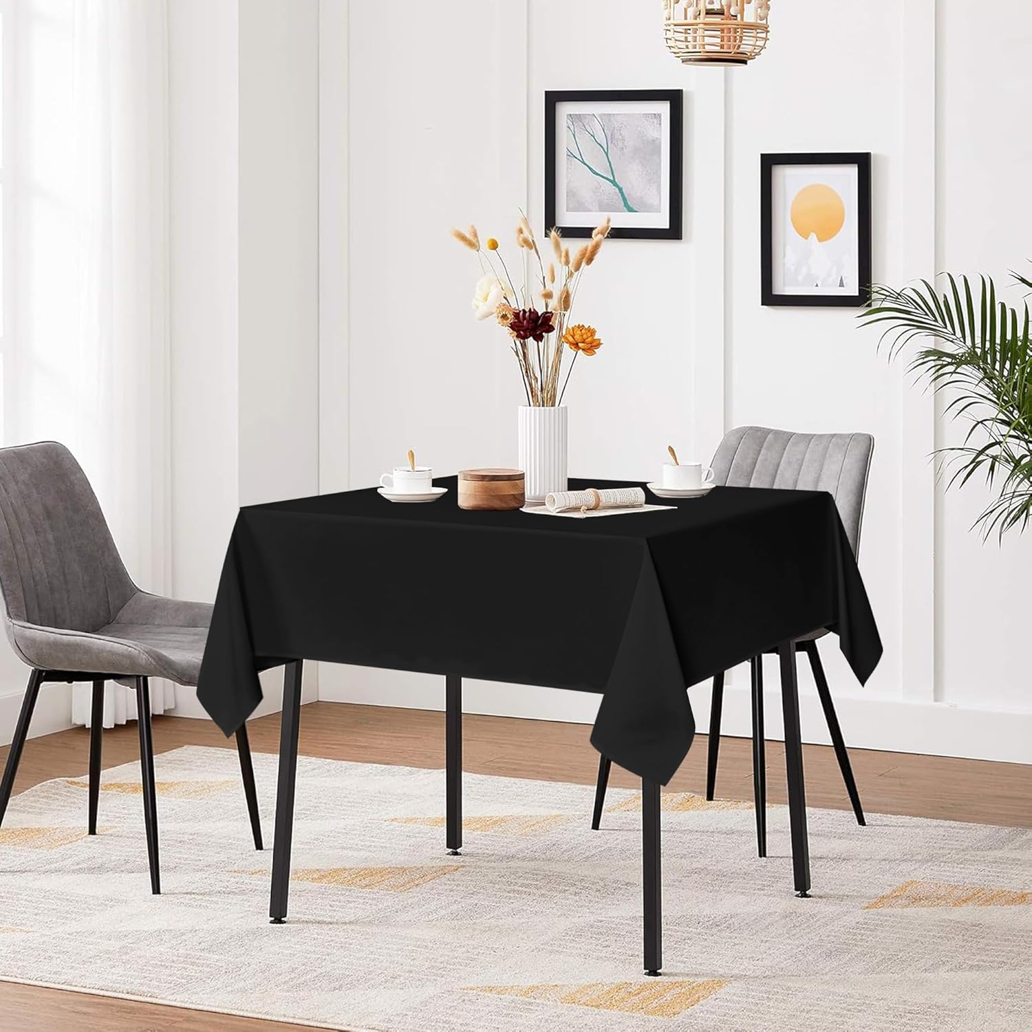 sancua Black Square Tablecloths 60x60 Inch - Fabric Table Cloth for Square or Round Tables, Washable Polyester Table Cover for Dinner, Holiday Party, Decorative Display Tables
