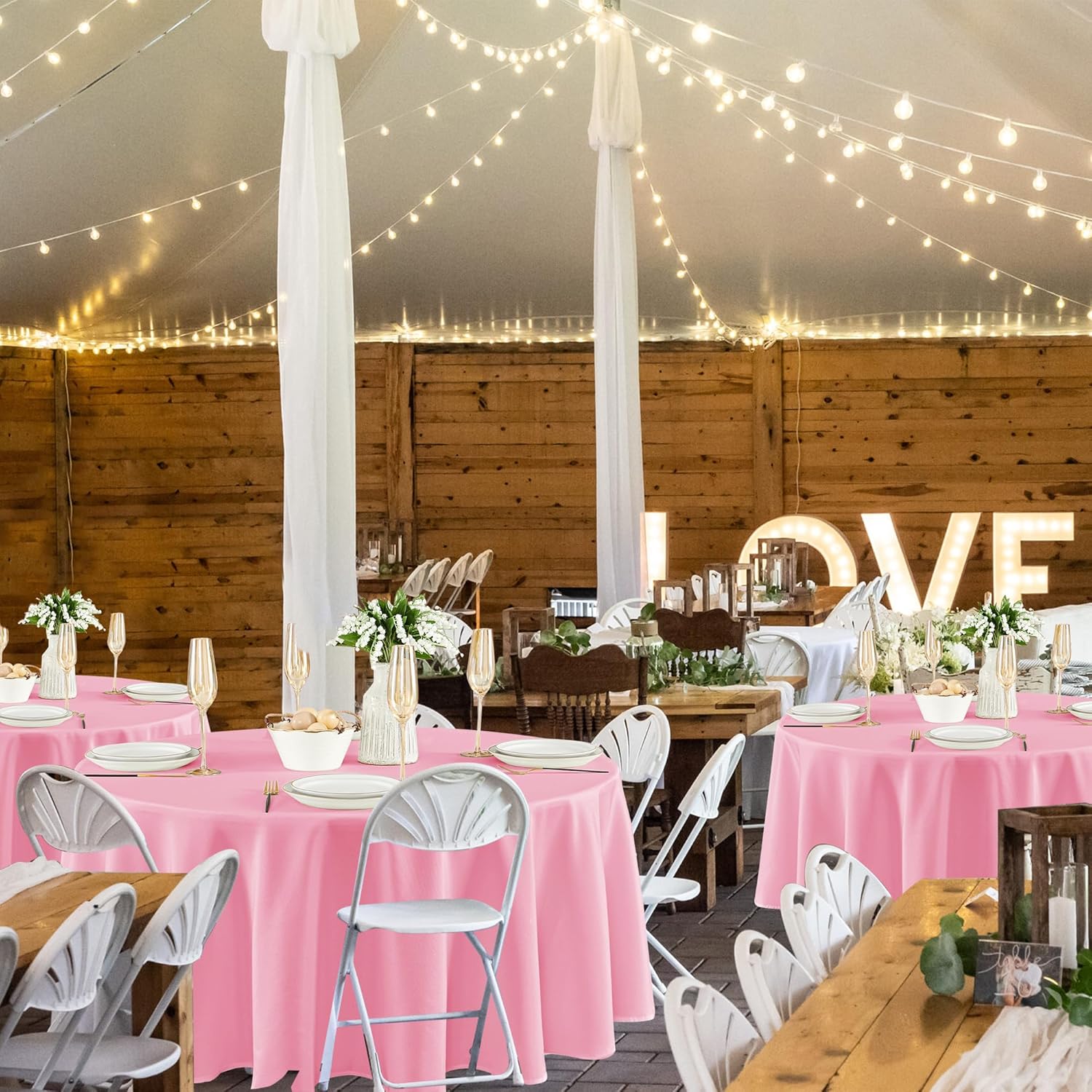 Fitable 8 Pack Round Tablecloths: Stain Resistant Wrinkle Free Circle Table Clothes, Washable Reusable Polyester Table Covers for Wedding Party Birthday Banquet Reception(Pink, 84 Inch)