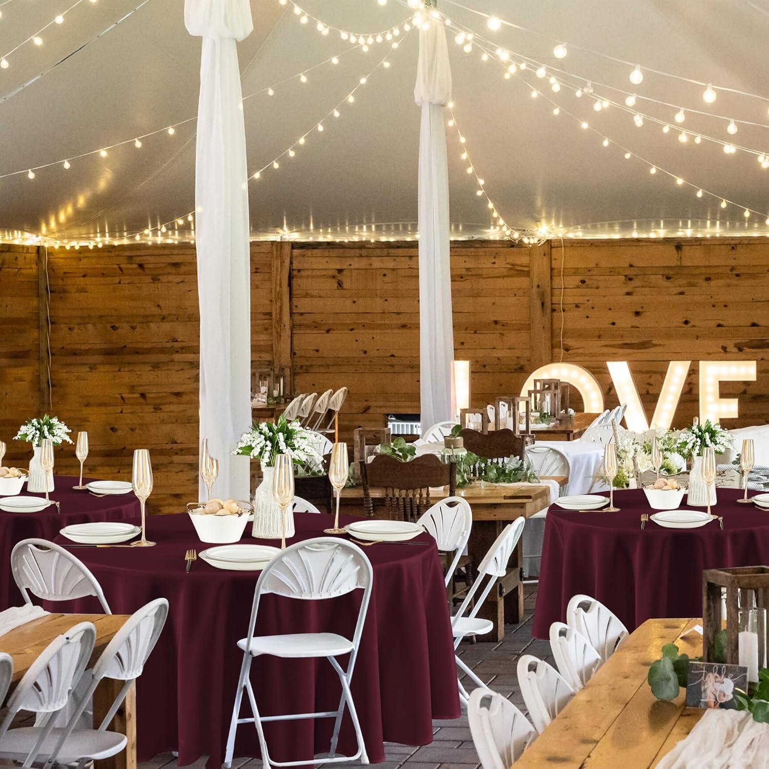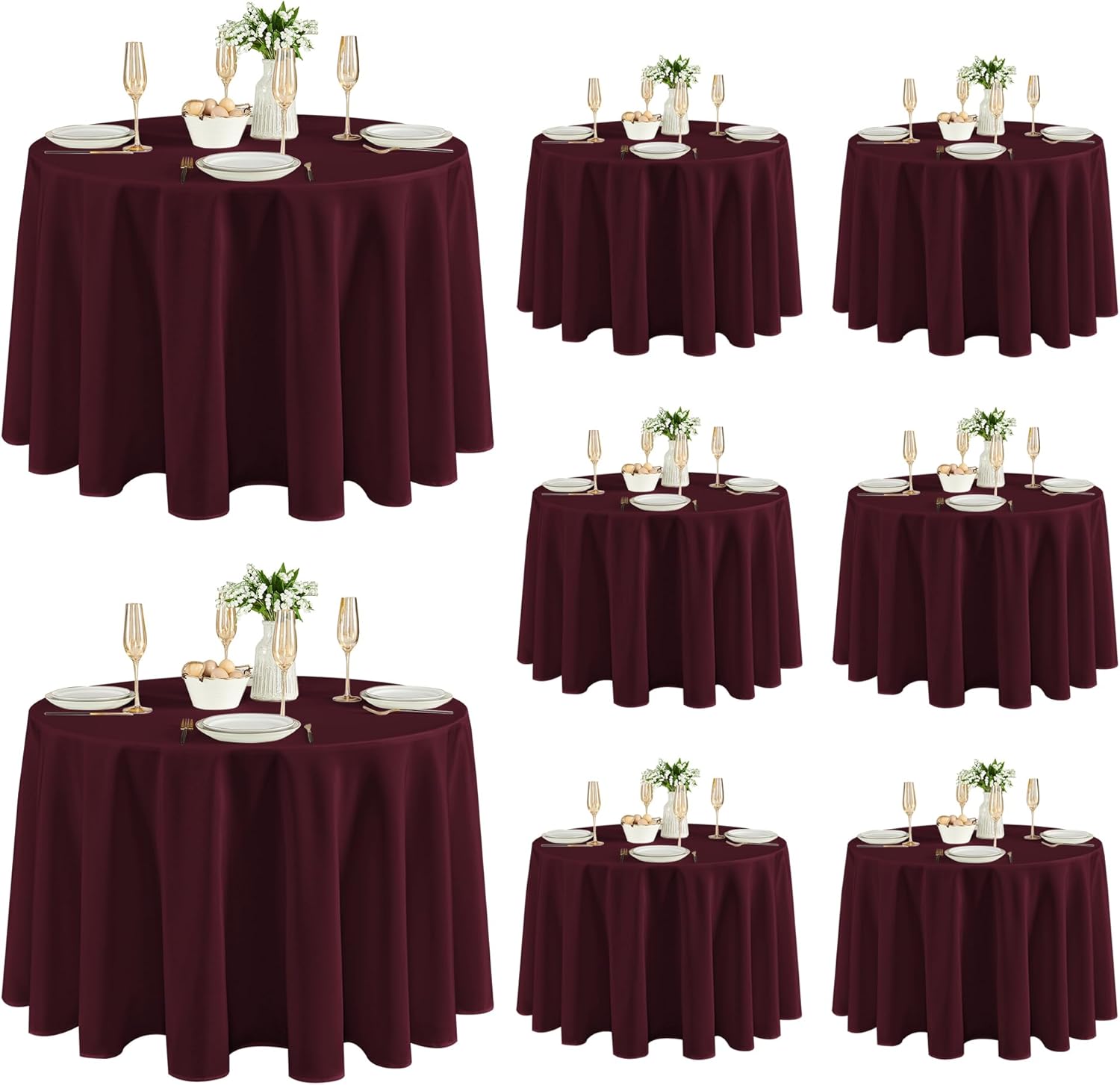 Fitable 8 Pack Round Tablecloths: Stain Resistant Wrinkle Free Circle Table Clothes, Washable Reusable Polyester Table Covers for Wedding Party Birthday Banquet Reception(Burgundy, 120 Inch)