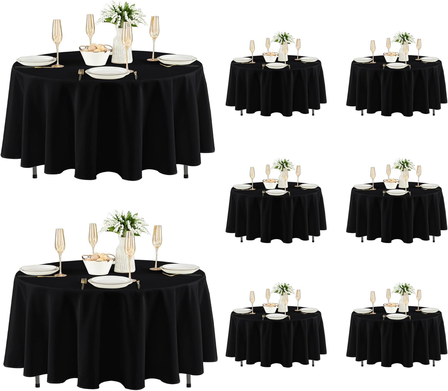Fitable 8 Pack Round Tablecloths: Stain Resistant Wrinkle Free Circle Table Clothes, Washable Reusable Polyester Table Covers for Wedding Party Birthday Banquet Reception(Black, 84 Inch)