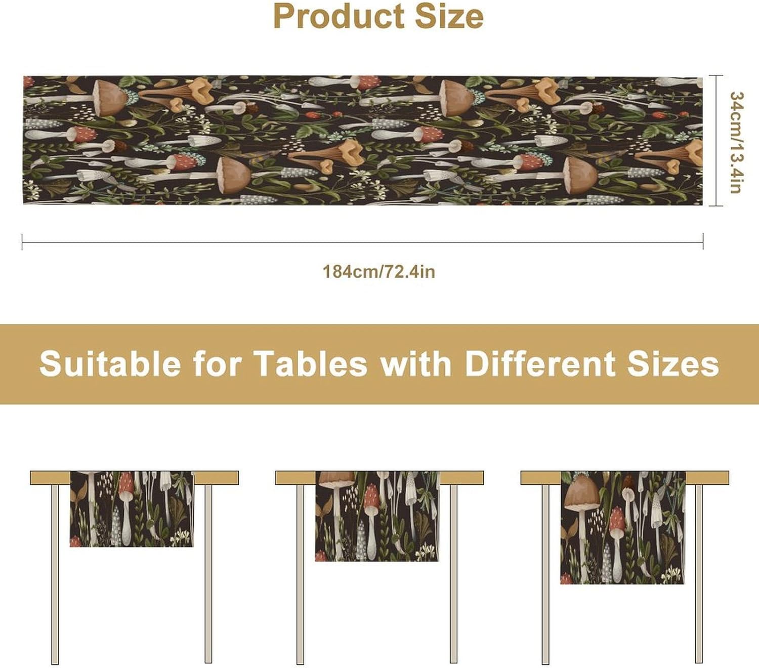 Mushroom Table Runner,Retro Forest Wildflower Botanical Plants Flower Art Pattern Print Burlap Hotel Indoors Outdoor Dining Room Kitchen Holiday Party, 13x90in
