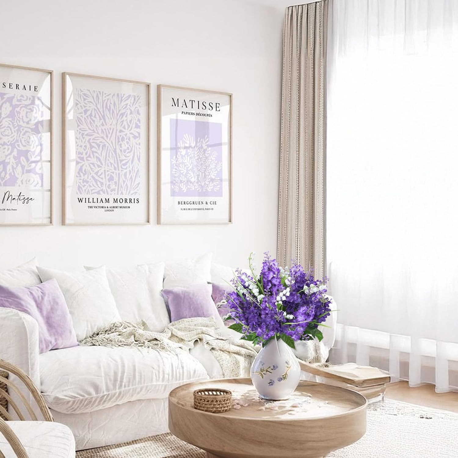 - [Realistic Purple Flowers]: artificial Lilac flowers in this bouquet are crafted with meticulous attention to detail, ensuring a highly realistic appearance. Their petals are lush, capturing the essence of the real flower. The purple hues are vibrant and inviting, adding a pop of color to any space while maintaining a sophisticated charm.