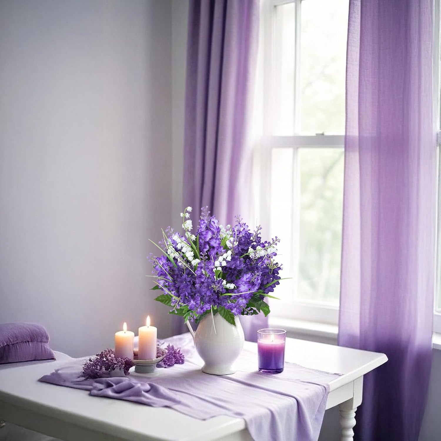 - [Special Combination]: Featuring a stunning mix of fake flowers purple—lilac and dark purple lilacs paired with pristine white campanulas. This artificial flower bouquet showcases a dominant purple palette, making it an ideal choice for elegance purple theme DIY or table centerpiece decor.