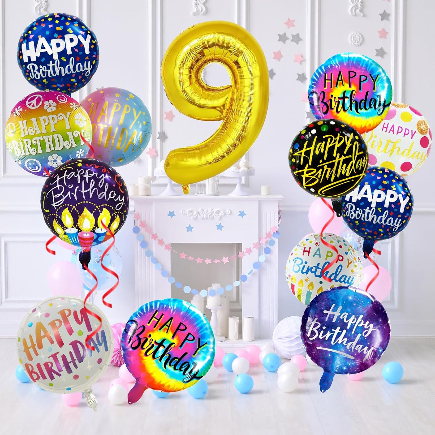 - Easy to Hang: you can blow the balloon with a pump or a straw, pinch the mouth of the balloon after inflation, and the balloon will automatically seal; You can suck the helium out with a straw and reuse the balloon; You can easily hang these balloons with four 5-meter ribbons. These foil birthday balloon can be attached to walls, doors, tables, windows and almost anywhere.