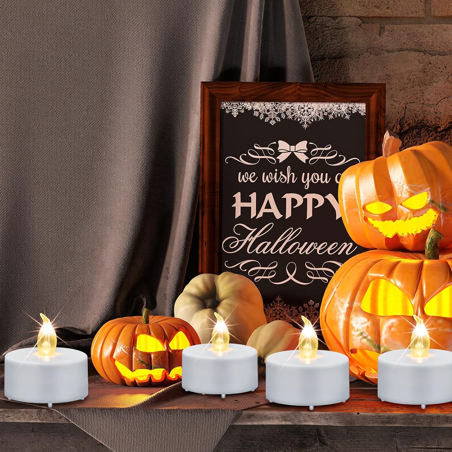 - 3.CREATE AMBIENCE. The warm yellow flameless LED tea light candles flicker and provide the effect of an actual candle, perfect for decorating weddings, parties, gardens, patios, decks, restaurants, lanterns, kids projects, centerpieces etc