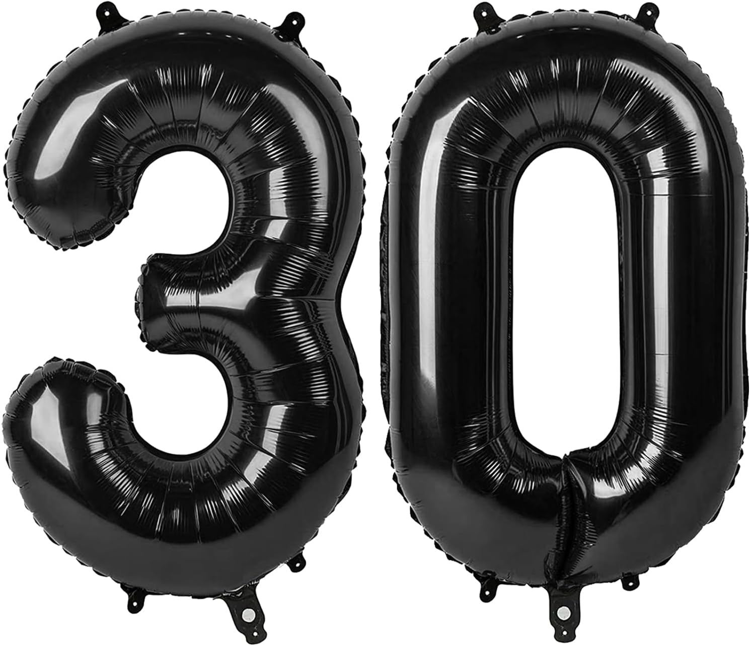 - 1.Elegant Understated Black Number Balloons:You will receive an uninflated 40 inch 30 balloon number. Big number balloons are always the best statement of romance surprise. Black birthday balloons symbolize vitality exoticism,adding glamour to birthday parties. Bright metallic black huge size make party decorations a highlight of special parties. Choose one or more numbers from 0-9 large number balloons,and use 30 black party balloons to create a lively and charming party!