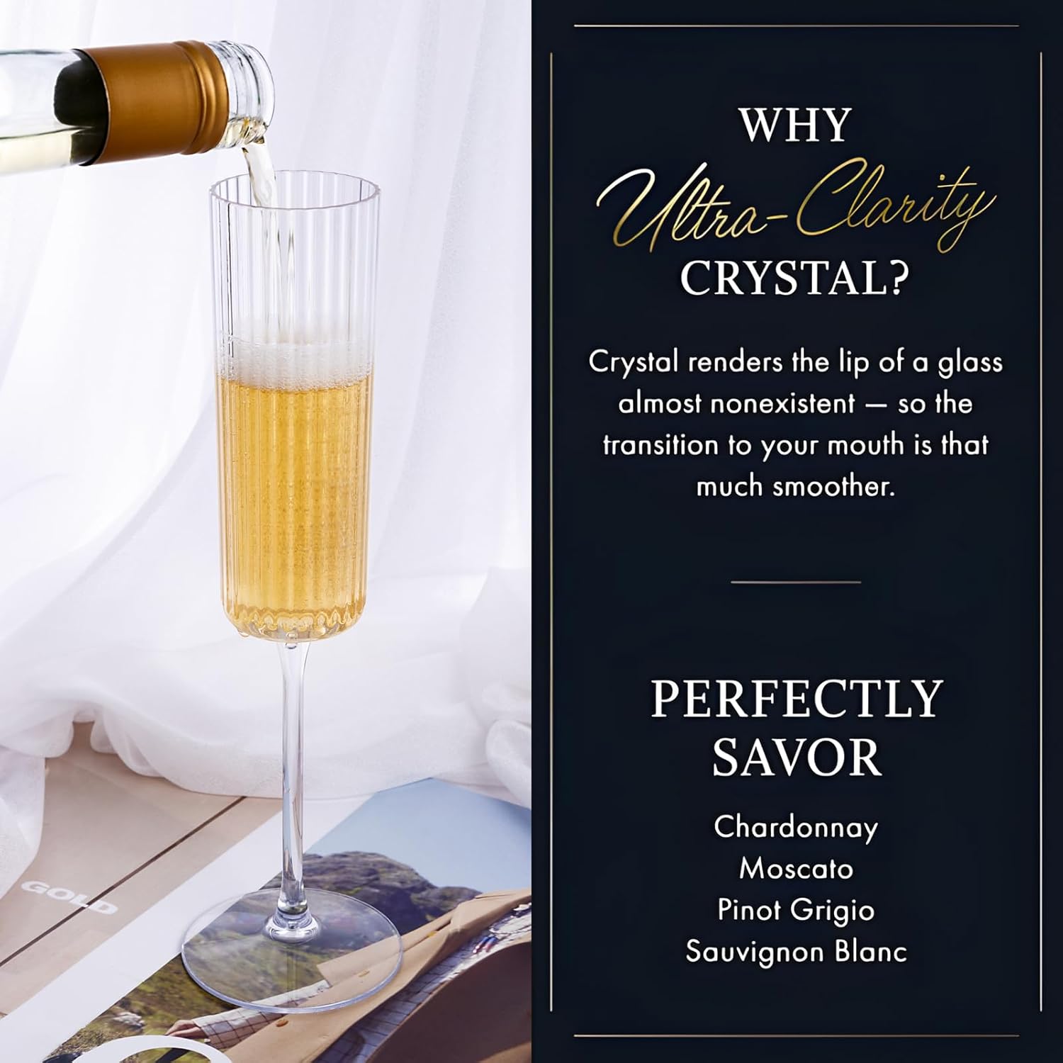 - Versatile for All Events: Ribbed champagne flutes suitable for various event scenarios. At weddings, it serves as a champagne flute to convey happiness and blessings; at birthday parties, it becomes an ideal choice for raising a glass to celebrate; during backyard barbecues, it is used as a practical cup for holding refreshing drinks; and even at high-end cocktail parties, it can perfectly fit and show its unique charm.