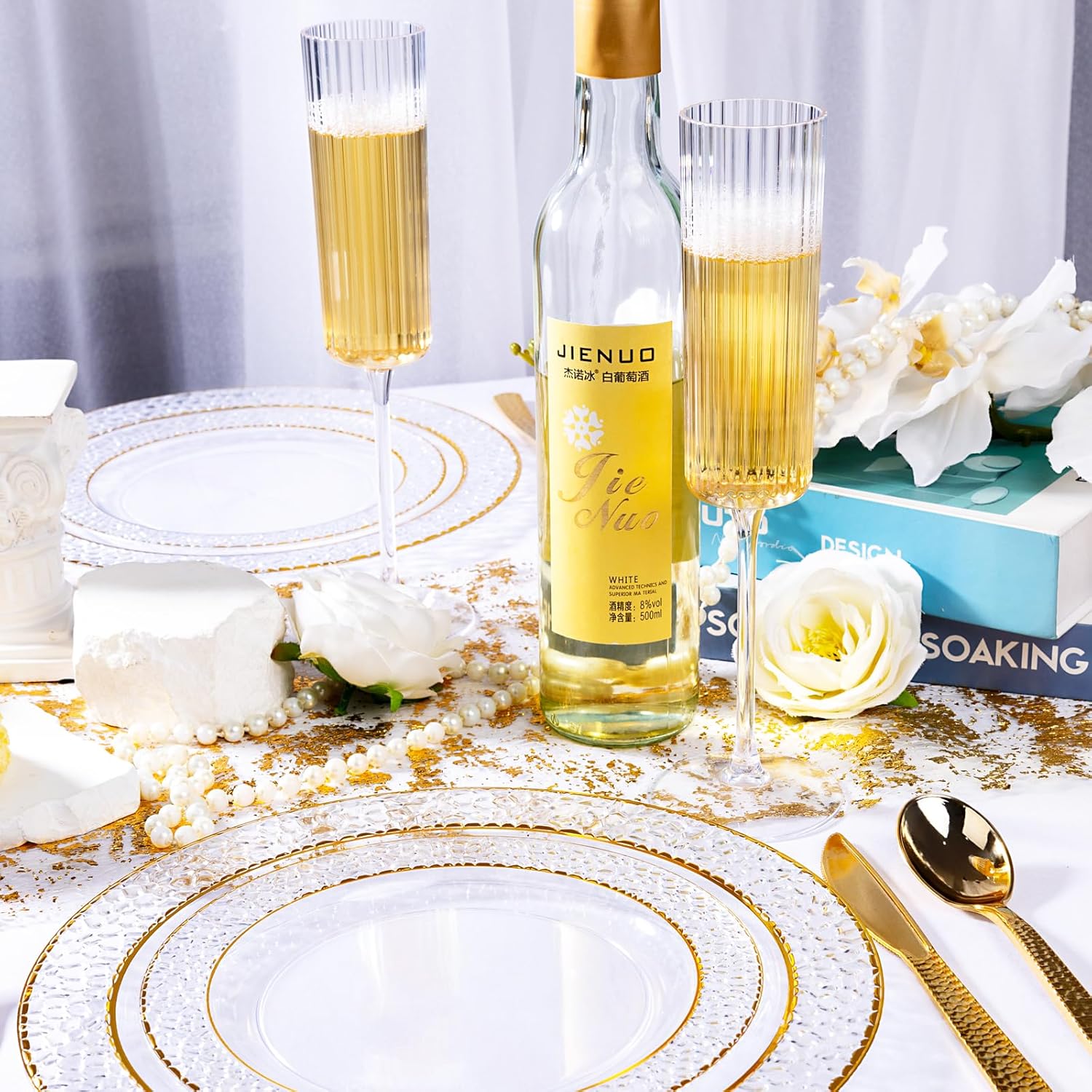 - Shatterproof & Disposable: Made from durable BPA-free plastic, these ribbed disposable champagne flutes are lightweight. Disposable champagne cups are not only reusable, allowing you to clean and keep them for future use after the party; if you don't have time to clean, you can also use them as disposable cups, easily solving the cleaning hassle and adding convenience to your party experience.