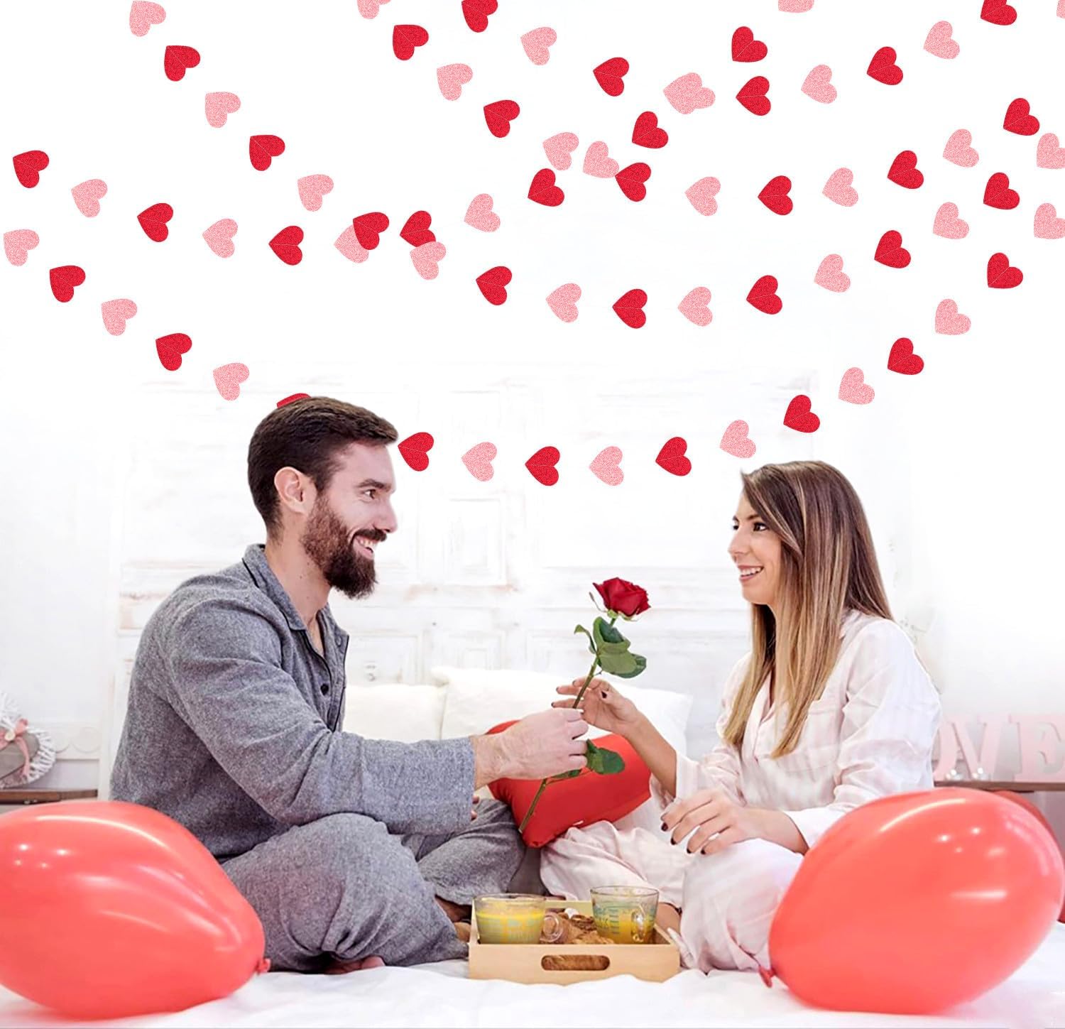 Red Pink Party-Decorations Heart Garland - 52ft Streamers Paper Banner,Proposal Anniversary Romantic Birthday Baby Shower Rustic Wedding Hanging Ornaments Decor Hugfond