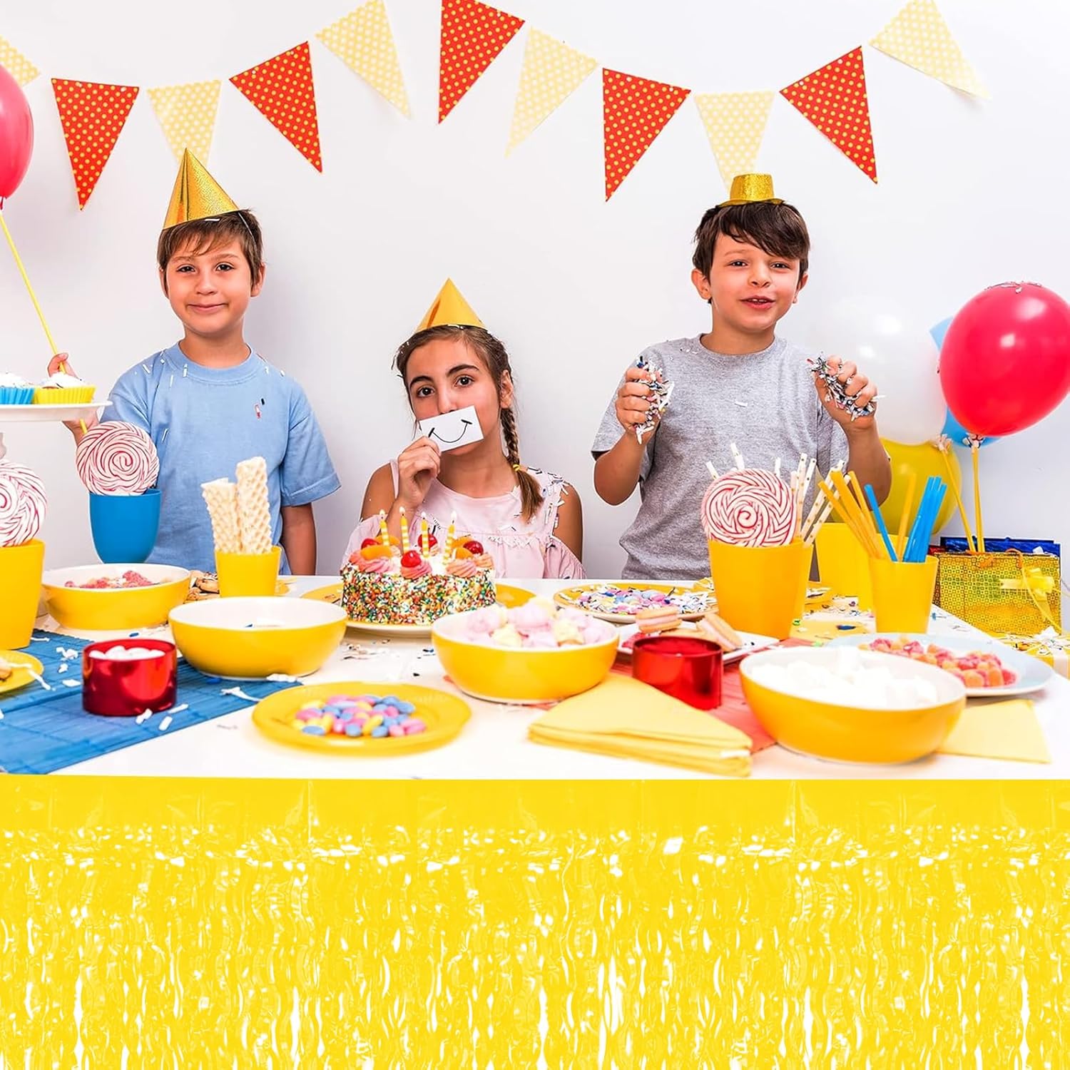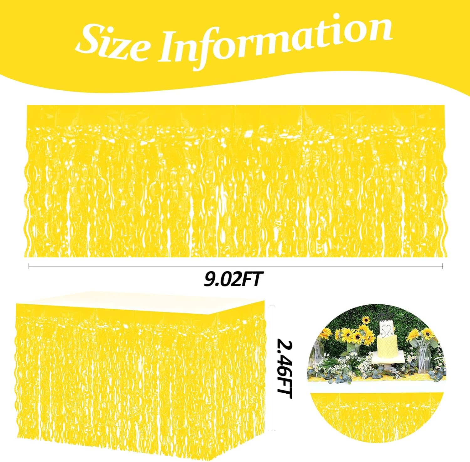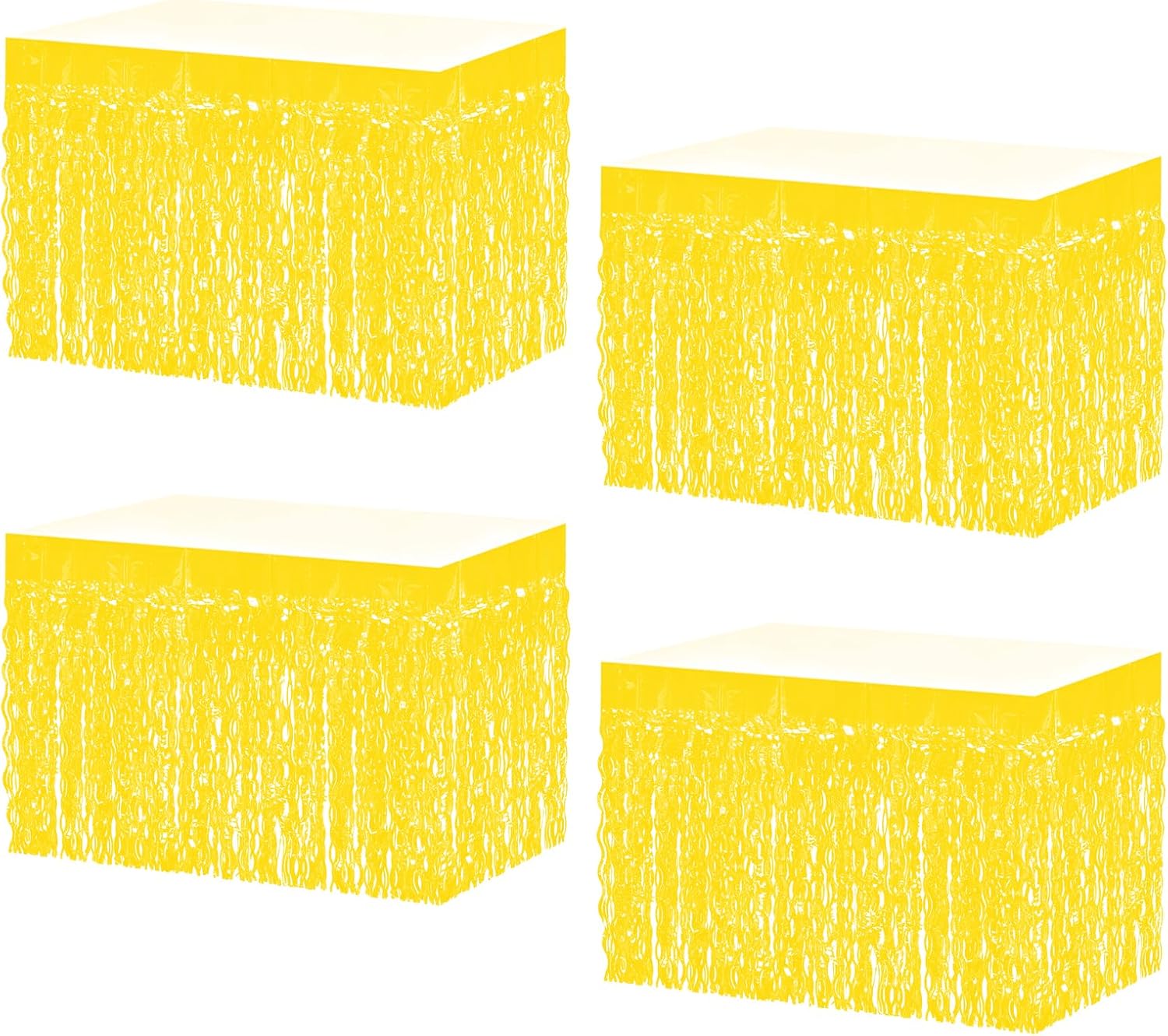 4P Wavy Metallic Tinsel Foil Fringe Table Skirts for Rectangle Tables Backdrop Garland Curtains for Parade Floats Wedding Birthday Parties Decoration Graduation 2025 Christmas (Makaron Yellow)