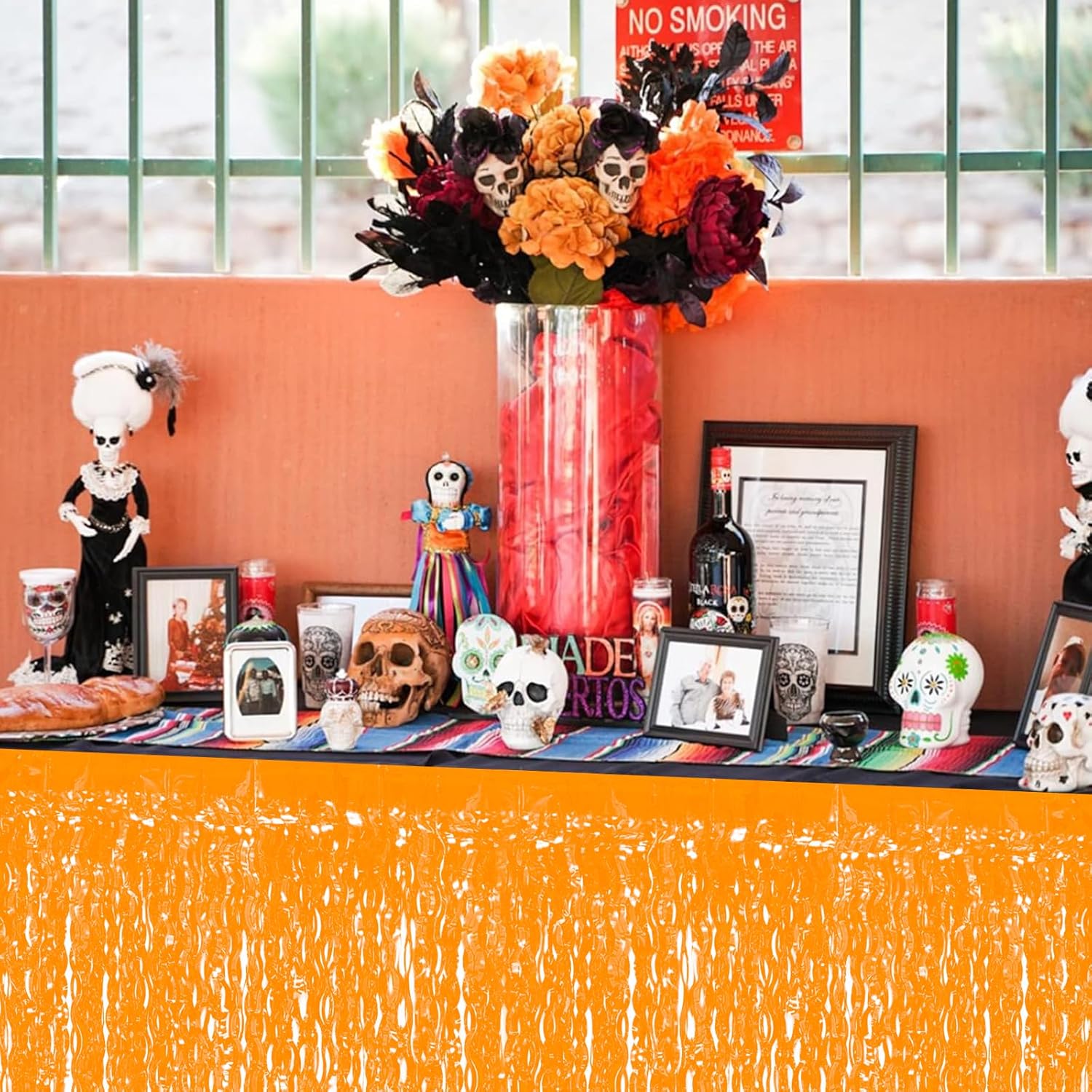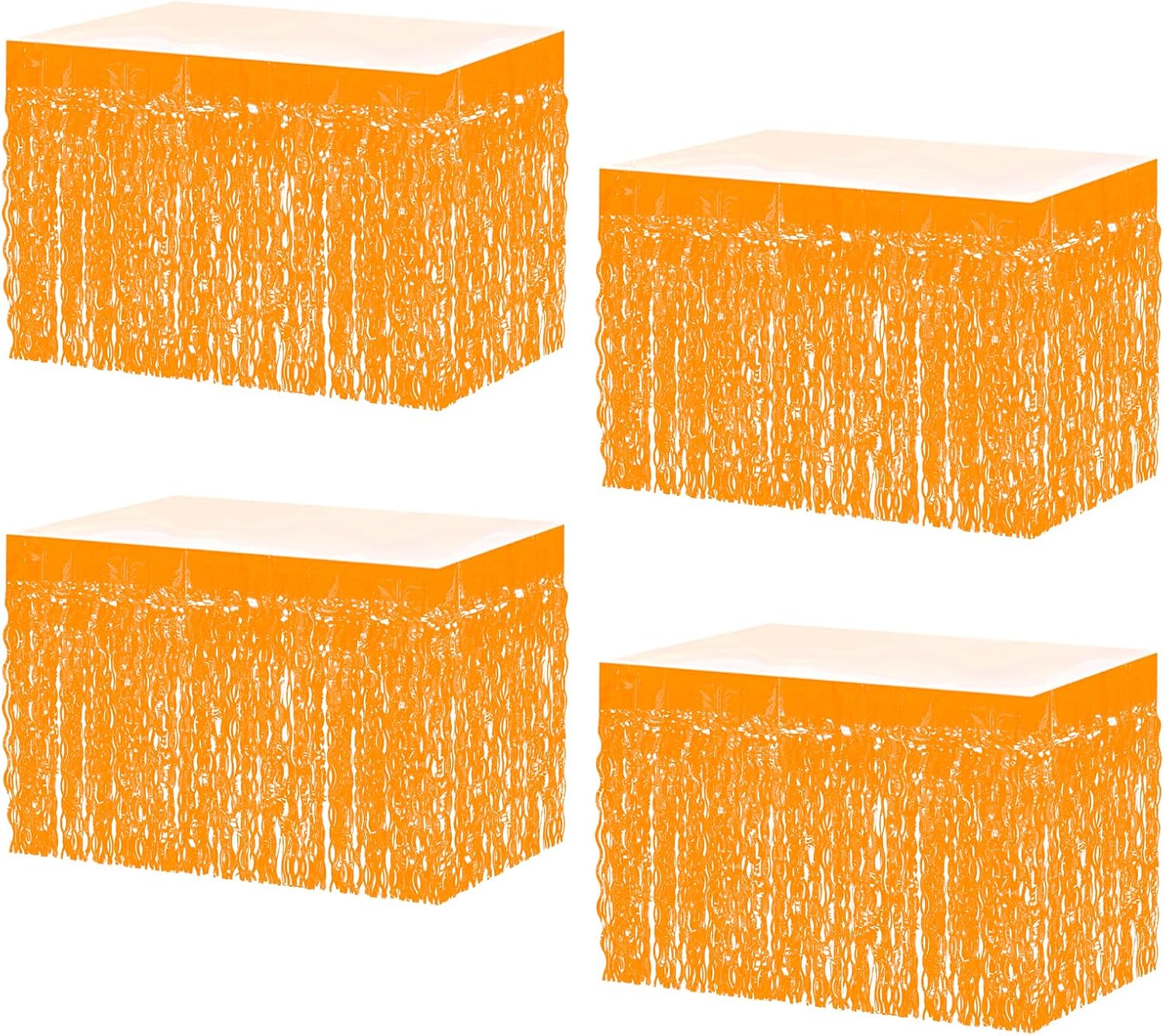 4P Wavy Metallic Tinsel Foil Fringe Table Skirts for Rectangle Tables Backdrop Garland Curtains for Parade Floats Wedding Birthday Parties Decoration Graduation 2025 Christmas (Makaron Orange)