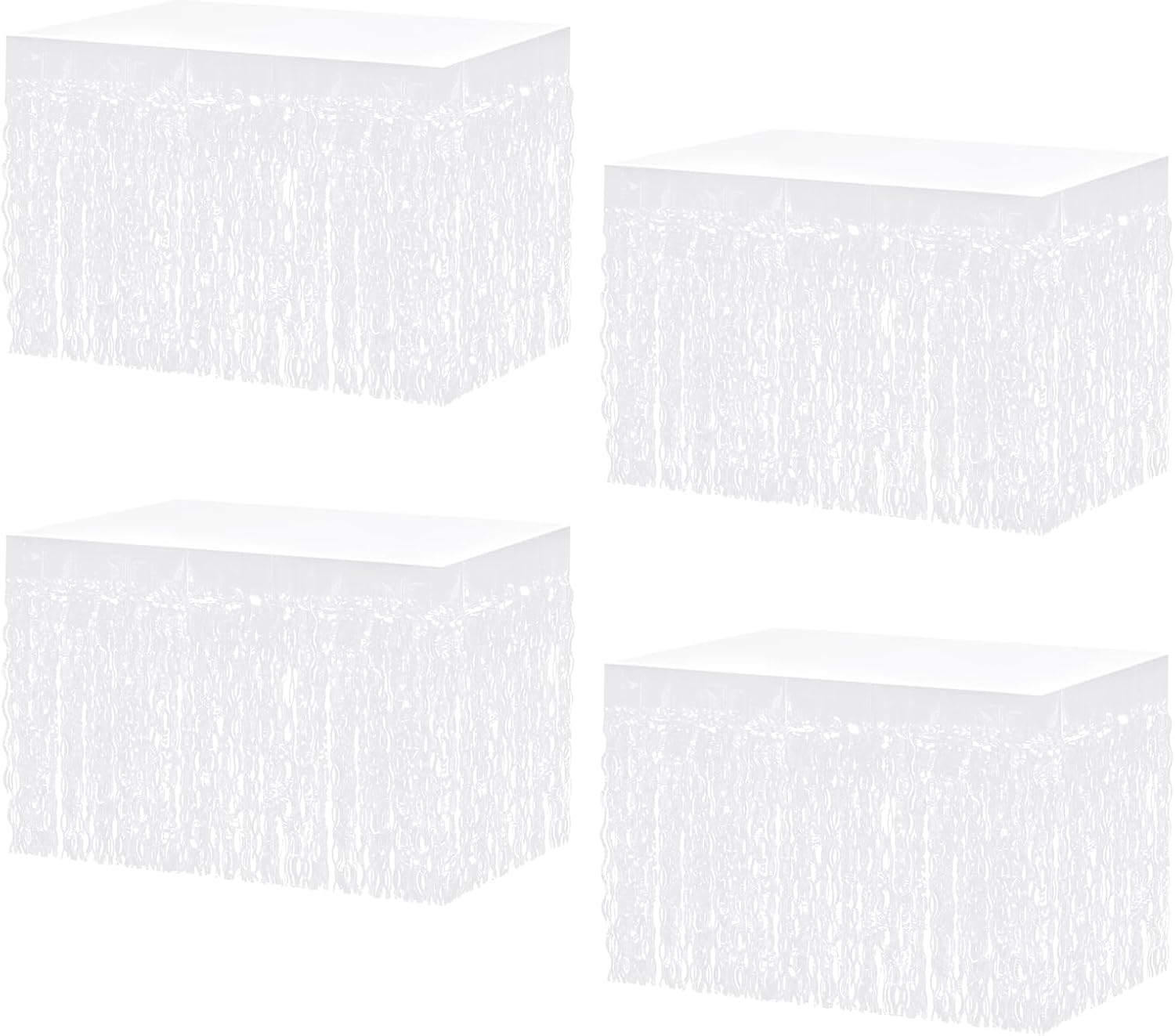 - 【 Material】 4 Pack Wavy Foil Fringe Tinsel Table Skirt: 30in x 108in(W*L) made of tinsel with a shiny surface and a lightweight durable metallic fringe skirt, not easy to wrinkle or tear. Please confirm the size your need before buying.