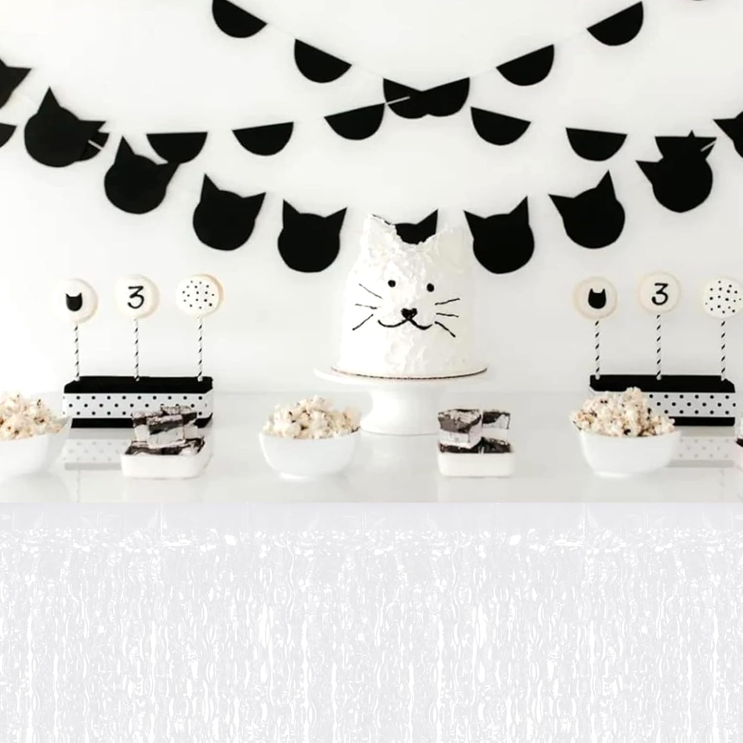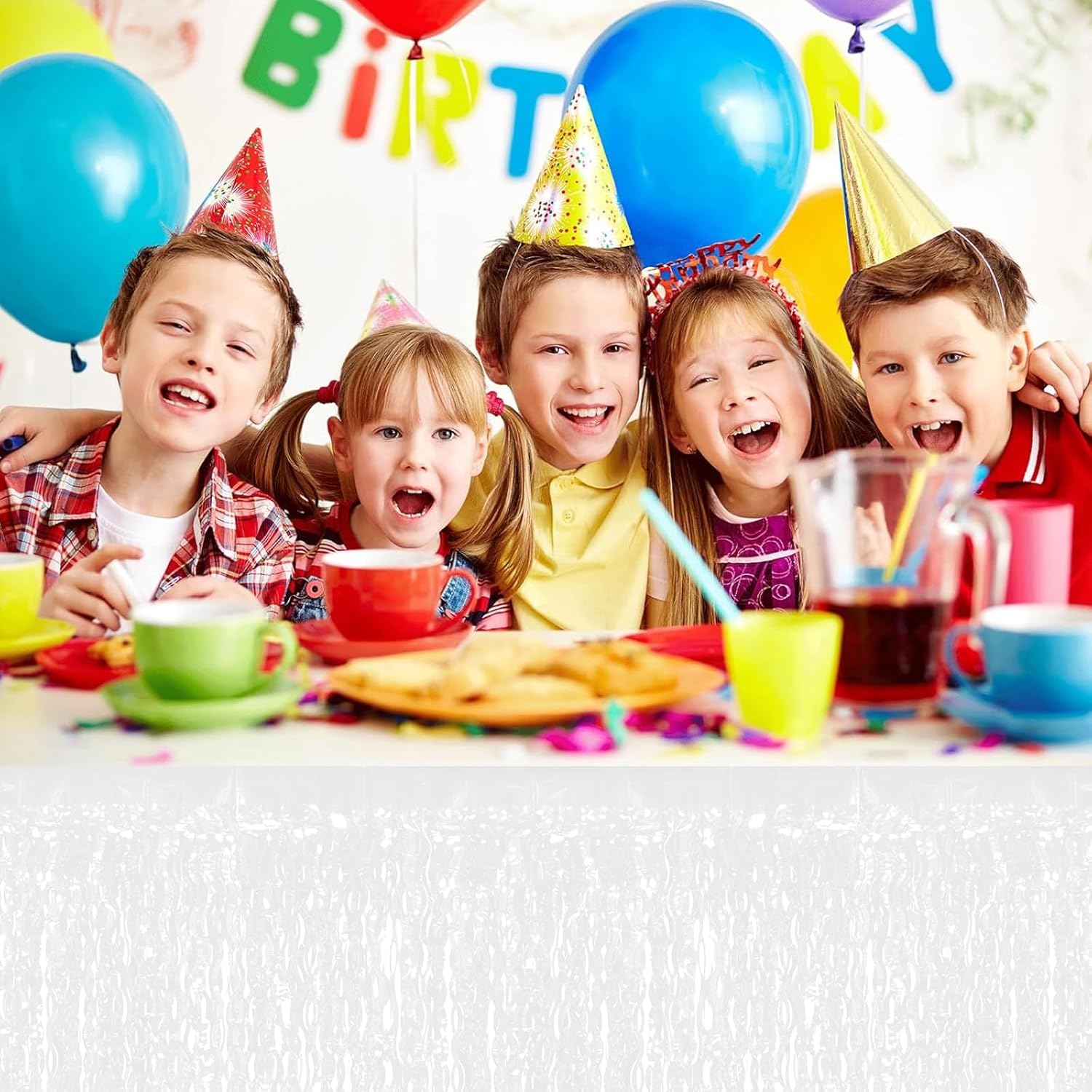 4P Wavy Metallic Tinsel Foil Fringe Table Skirts for Rectangle Tables Backdrop Garland Curtains for Parade Floats Wedding Birthday Parties Decoration Graduation 2025 Christmas (Makaron White)