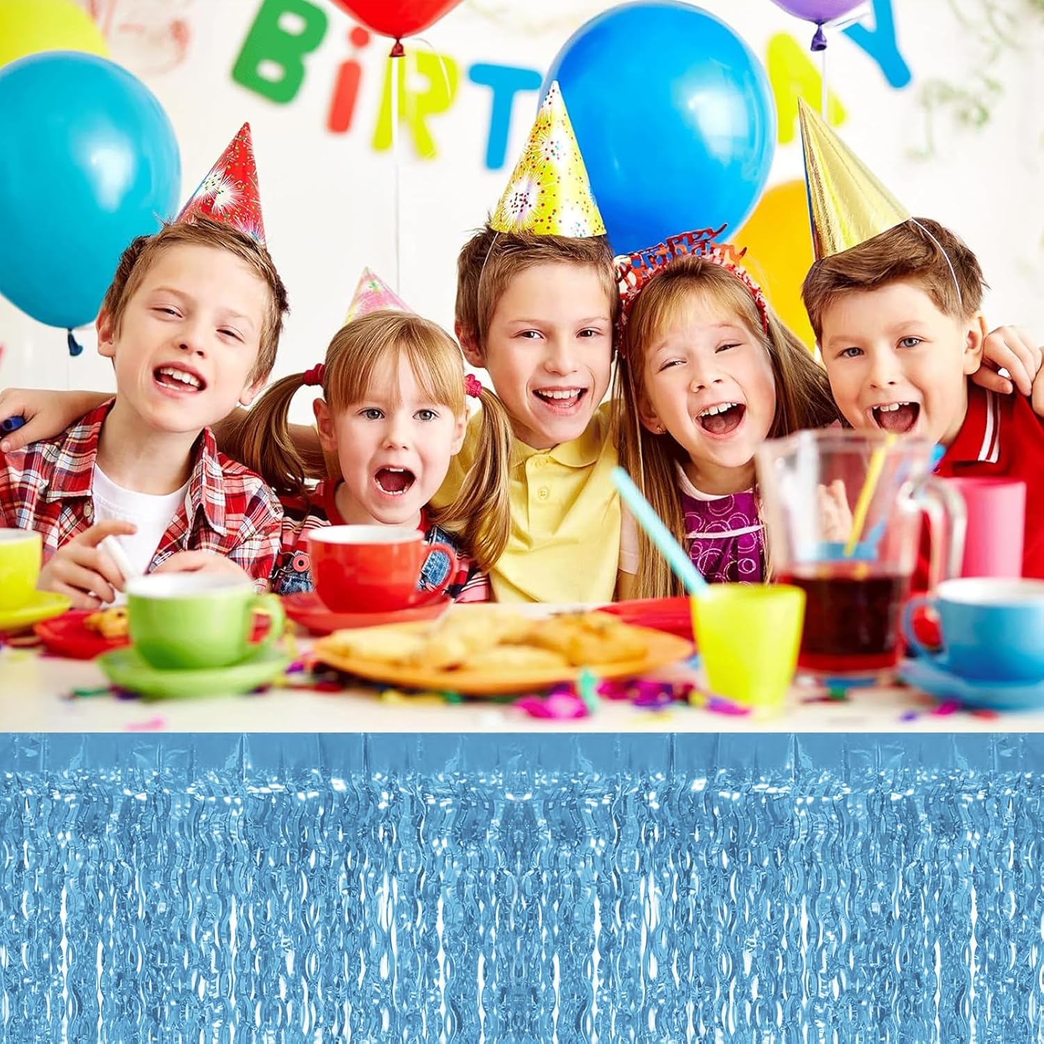 4P Wavy Metallic Tinsel Foil Fringe Table Skirts for Rectangle Tables Backdrop Garland Curtains for Parade Floats Wedding Birthday Parties Decoration Graduation 2025 Christmas (Light Blue)