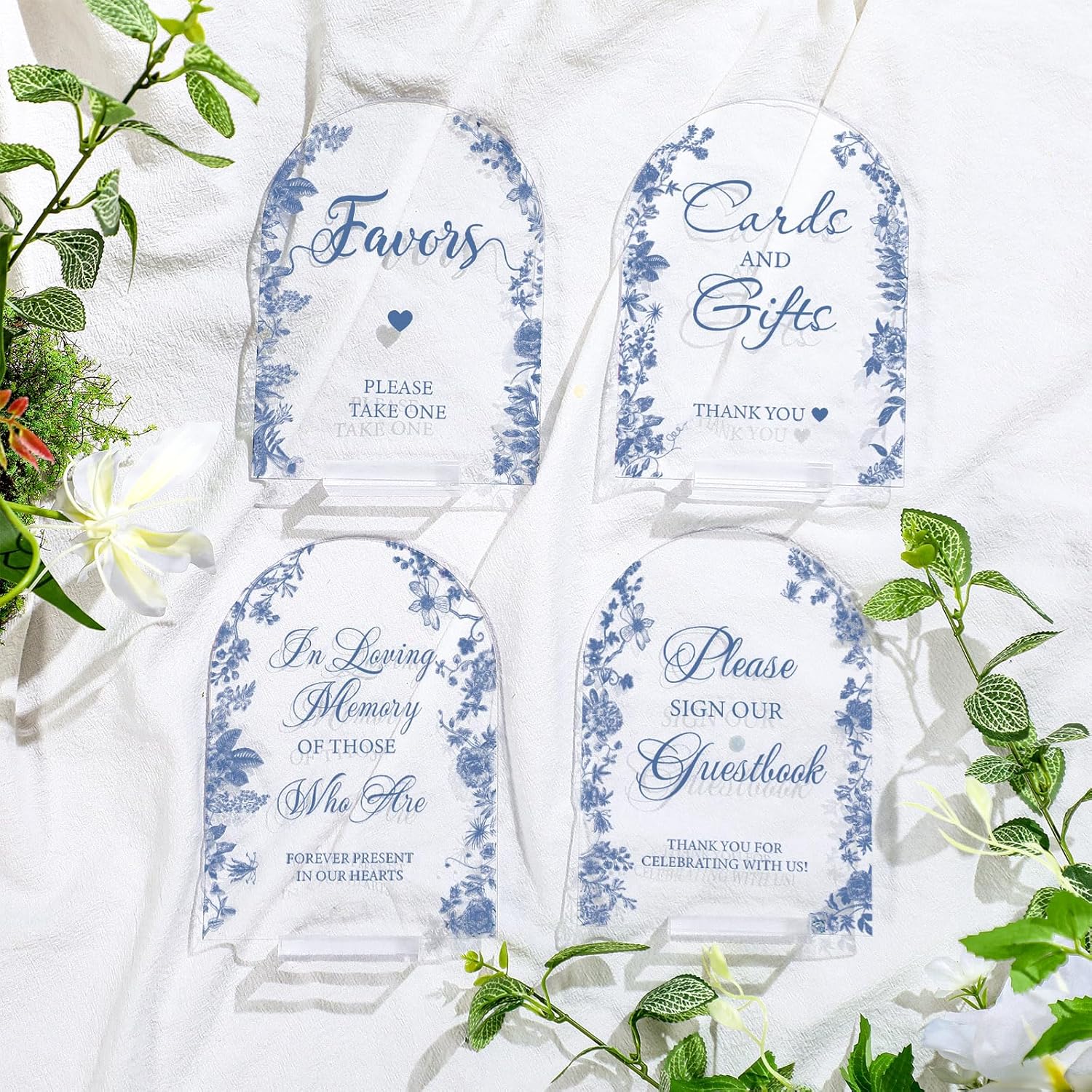 4 Pcs Flower Acrylic Wedding Signs for Ceremony and Reception Guest Book Wedding Cards and Gifts Sign Please Take One Couple Loving Memory table Decor(Blue Flower)