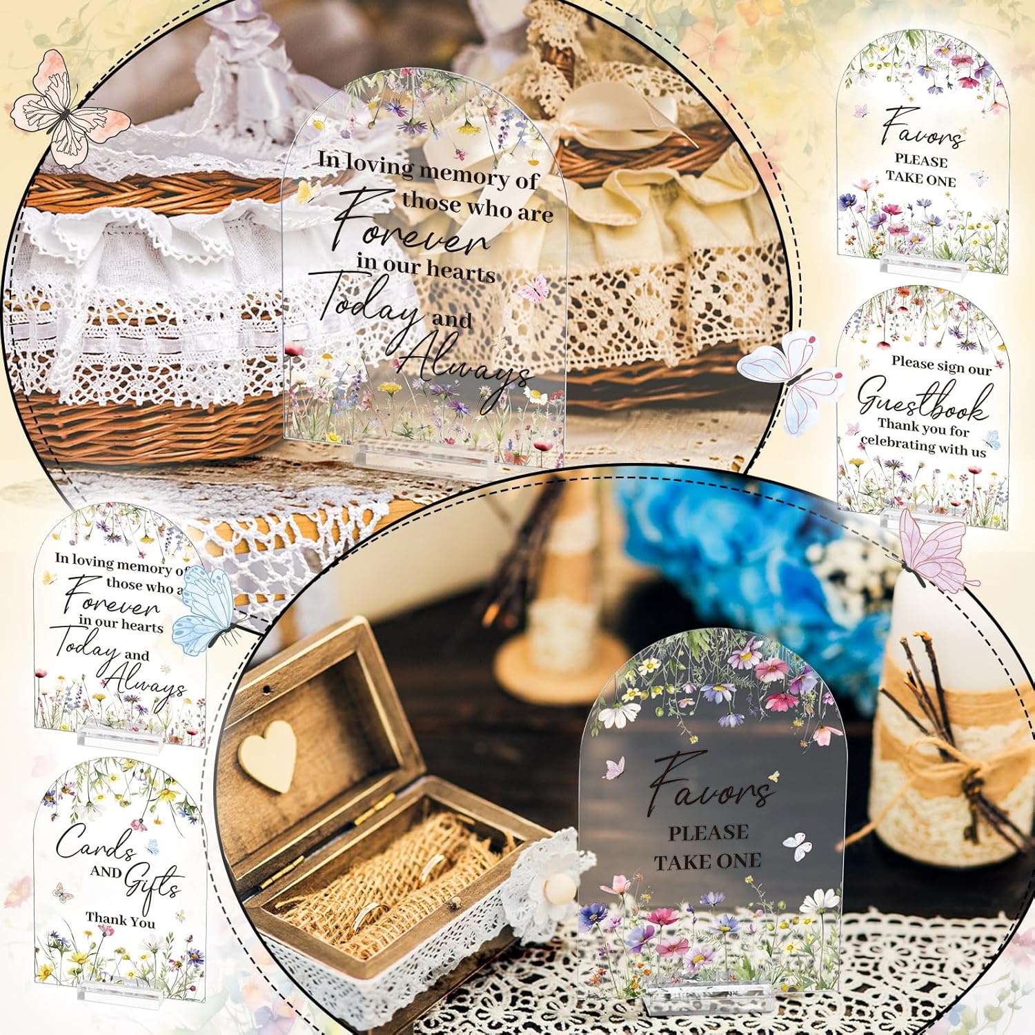 - Charming Floral Design: featuring a trendy arch shape and vibrant wildflower prints, these acrylic wedding signs add an elegant touch to your special day, nice for enhancing table decor and creating a warm atmosphere