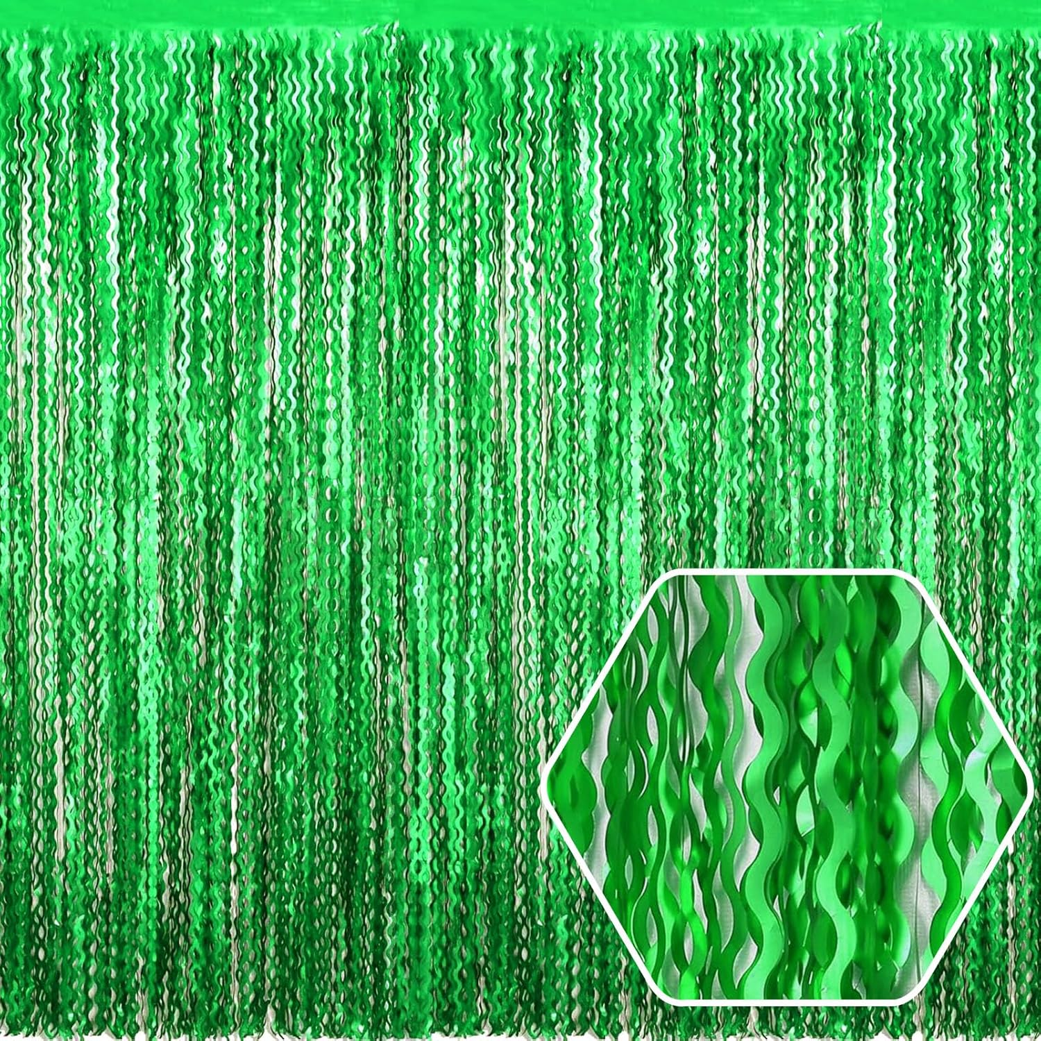 4 Pack Green Wave Foil Fringe Curtain Backdrop, 3.28Ft x 8.2Ft Metallic Tinsel Foil Fringe Streamer Curtains for Photo Booth, Mother's Day, Easter, Birthday, Wedding Party Decoration