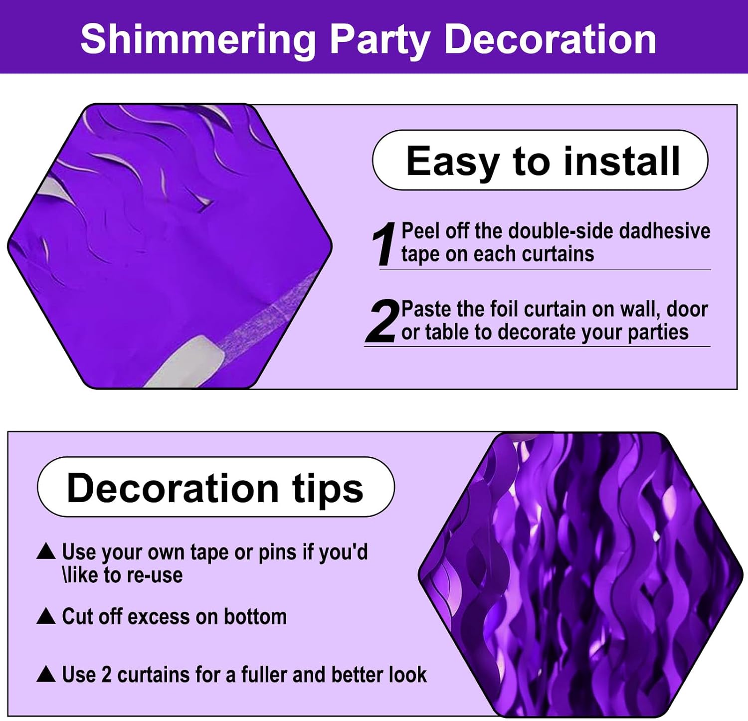 4 Pack Purple Wave Foil Fringe Curtain Backdrop, 3.28Ft x 8.2Ft Metallic Tinsel Foil Fringe Streamer Curtains for Photo Booth, Mother's Day, Easter, Birthday, Wedding Party Decoration