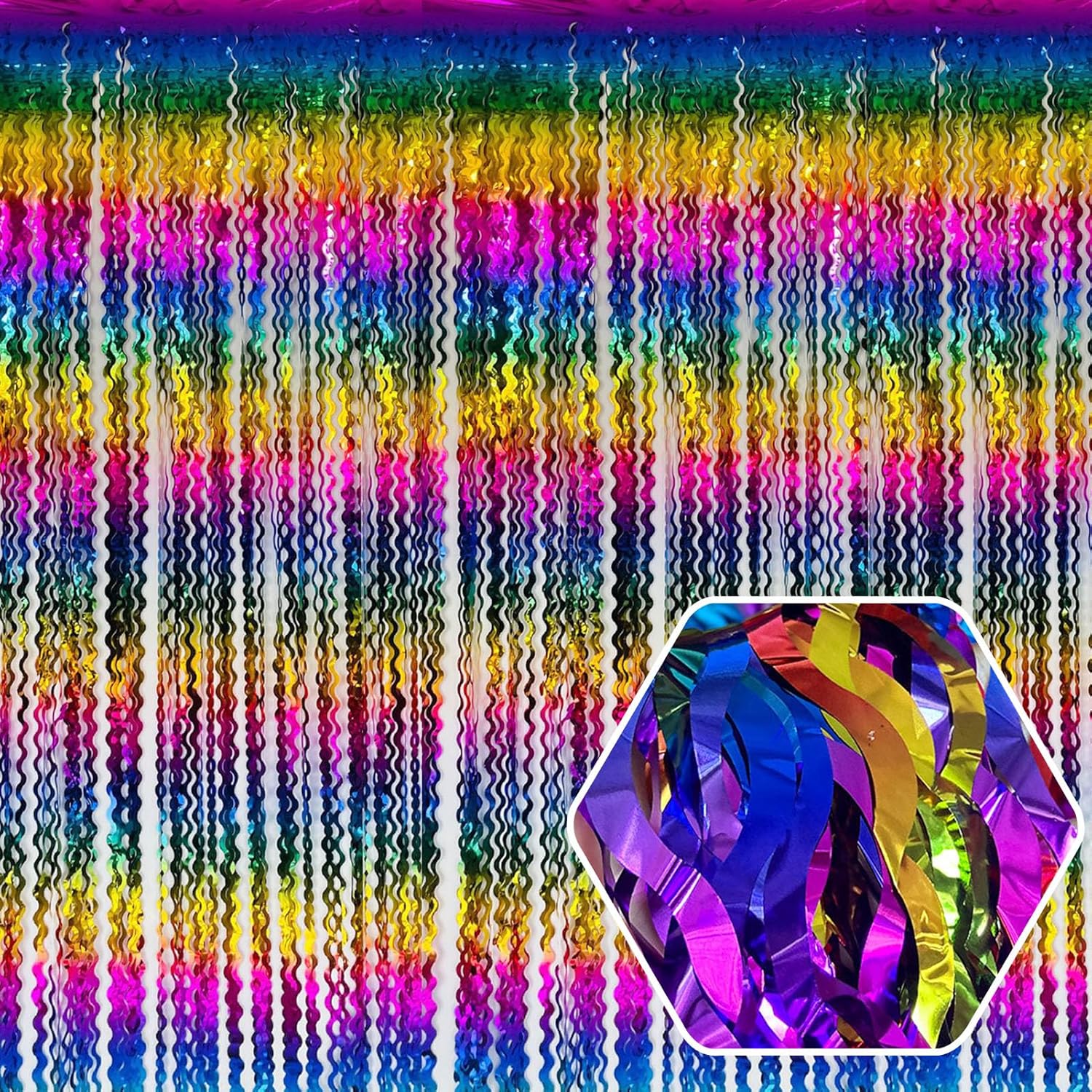 - Easy To Assemble | Strong Adhesive | Not Easy Fade : The foil fringe curtain backdrop party decorations come with double-sided adhesive tape, easy to use, just tear off the back of adhesive tape, then paste this streamers backdrop curtains on the top of wall, window, table, or as door fringe decoration.
